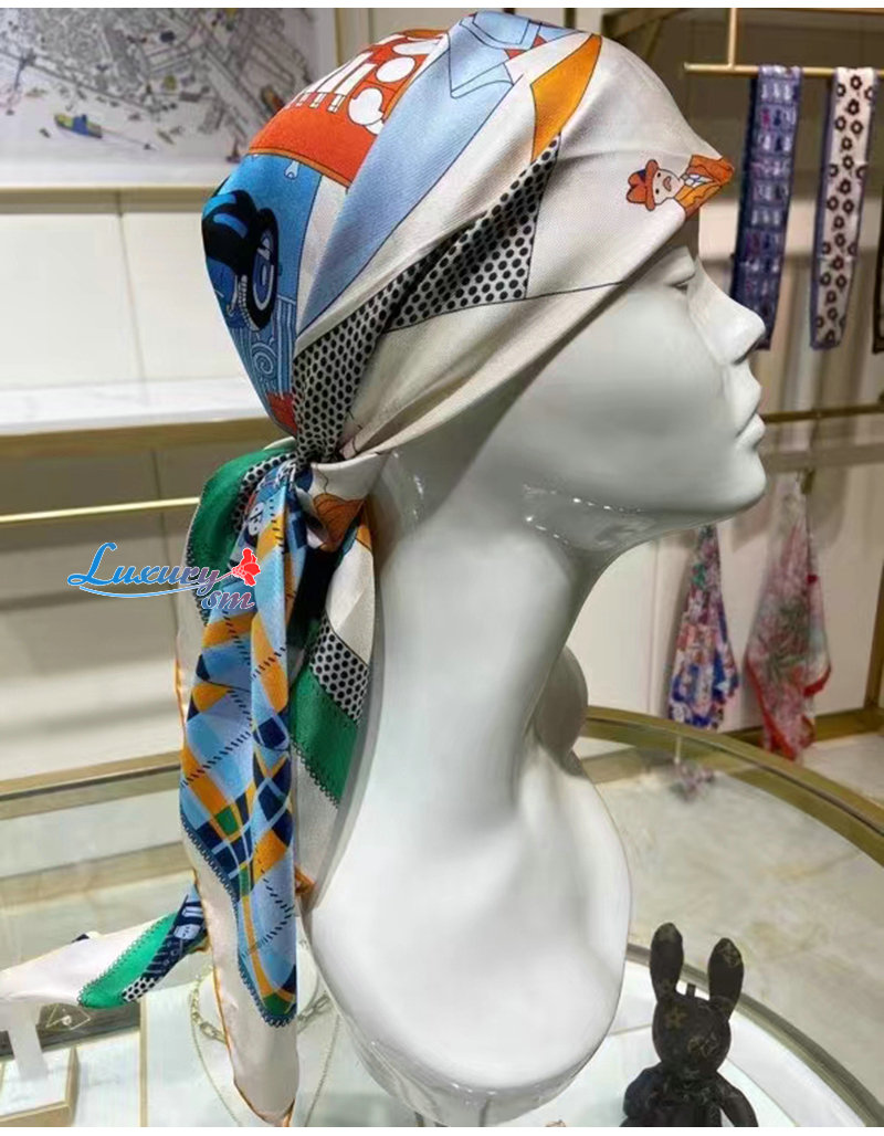 HERMES-H981902 에르메스 블루 Confort en Automobile 스카프