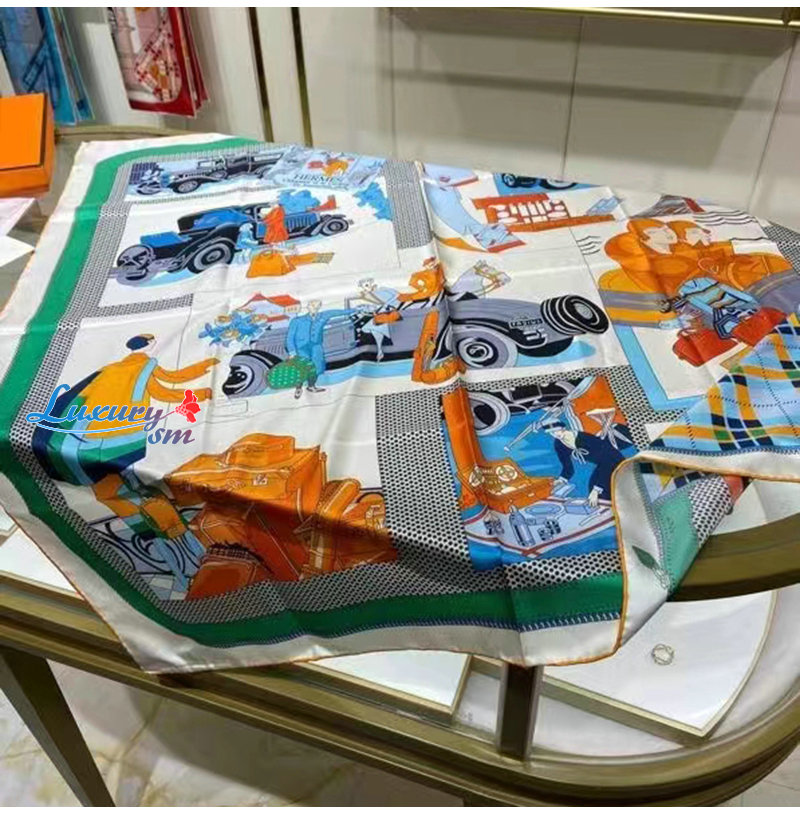 HERMES-H981902 에르메스 오렌지 Confort en Automobile 스카프