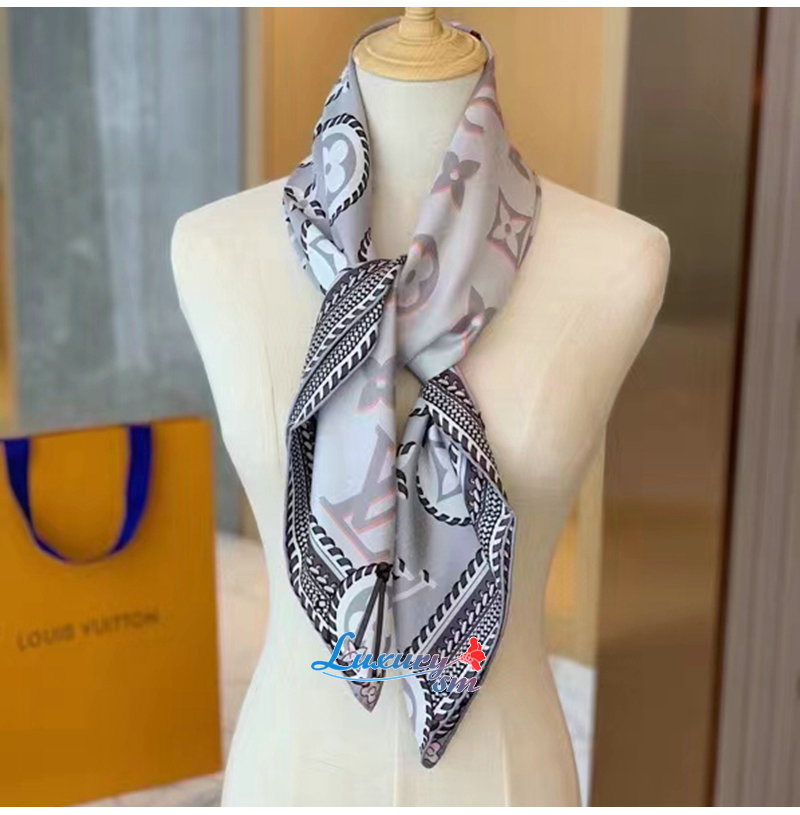 LOUIS VUITTON-M77704 루이비통 그레이 브레이디드 모노그램 프린티드 숄