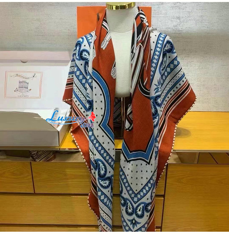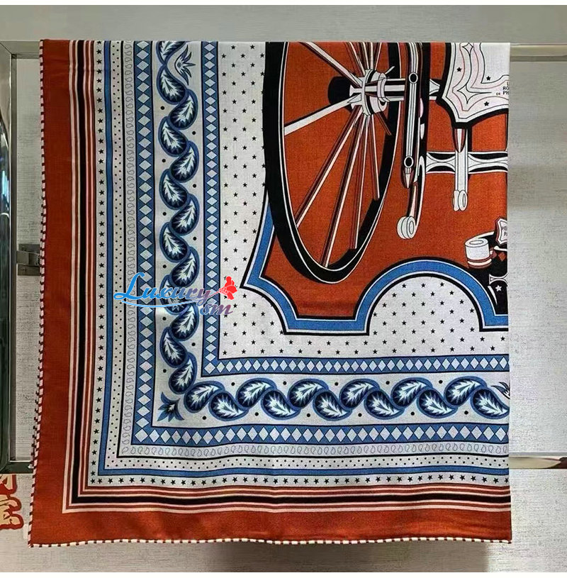 HERMES-H244170S 에르메스 오렌지 Les Roues de Phaeton Bandana 숄140 가격 : 210,000원