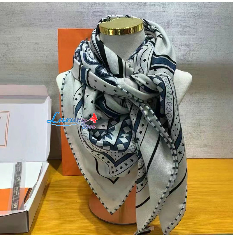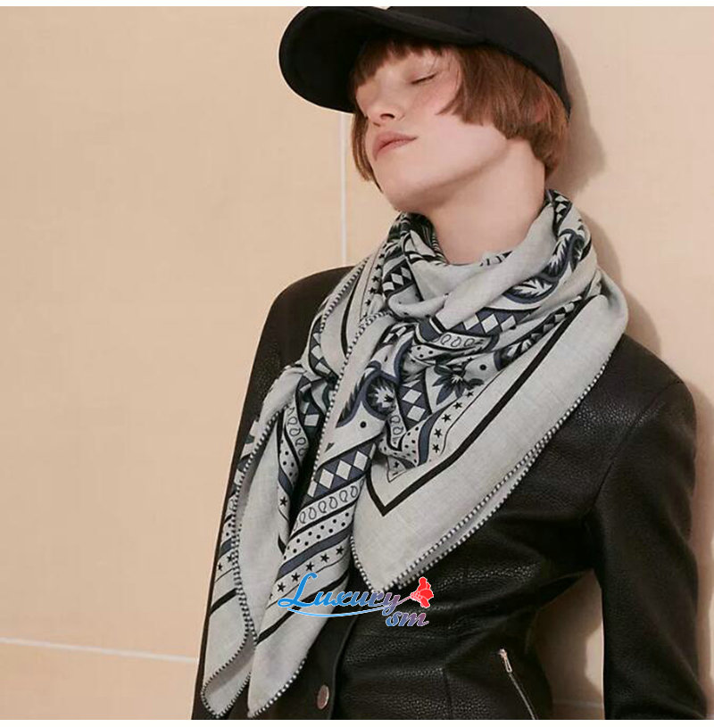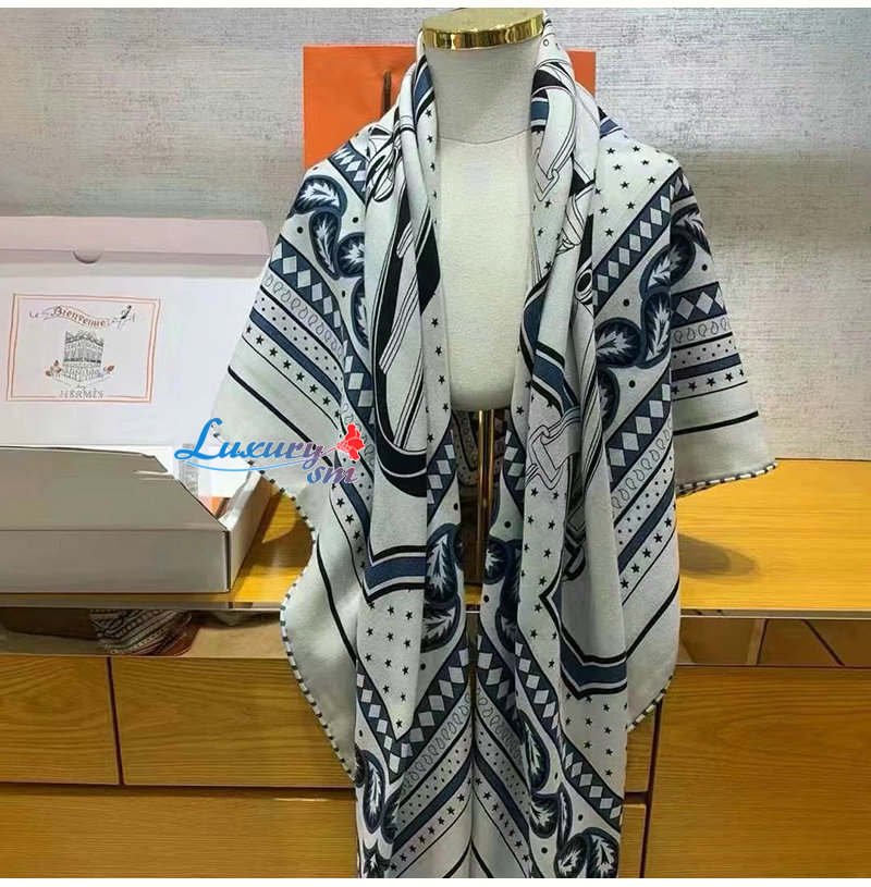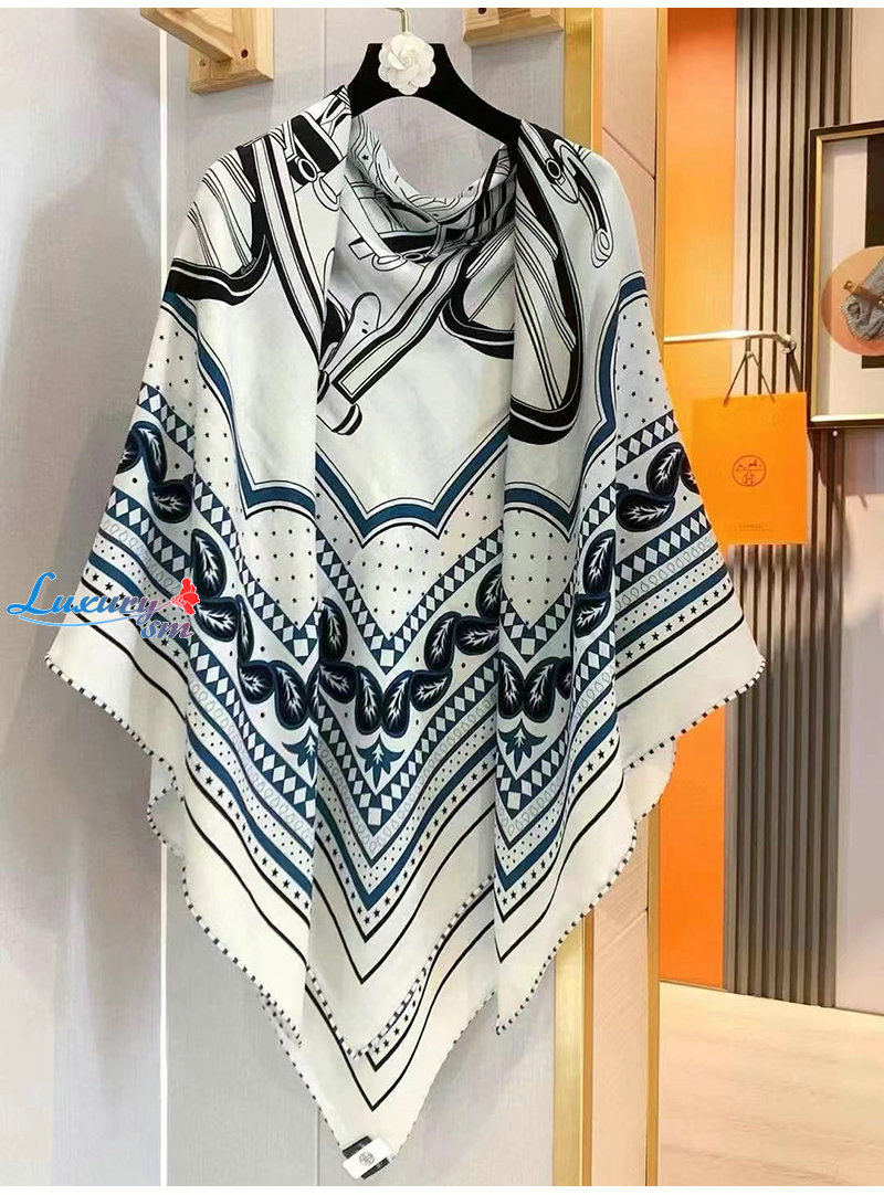 HERMES-H244170S 에르메스 네이비 Les Roues de Phaeton Bandana 숄140 가격 : 210,000원