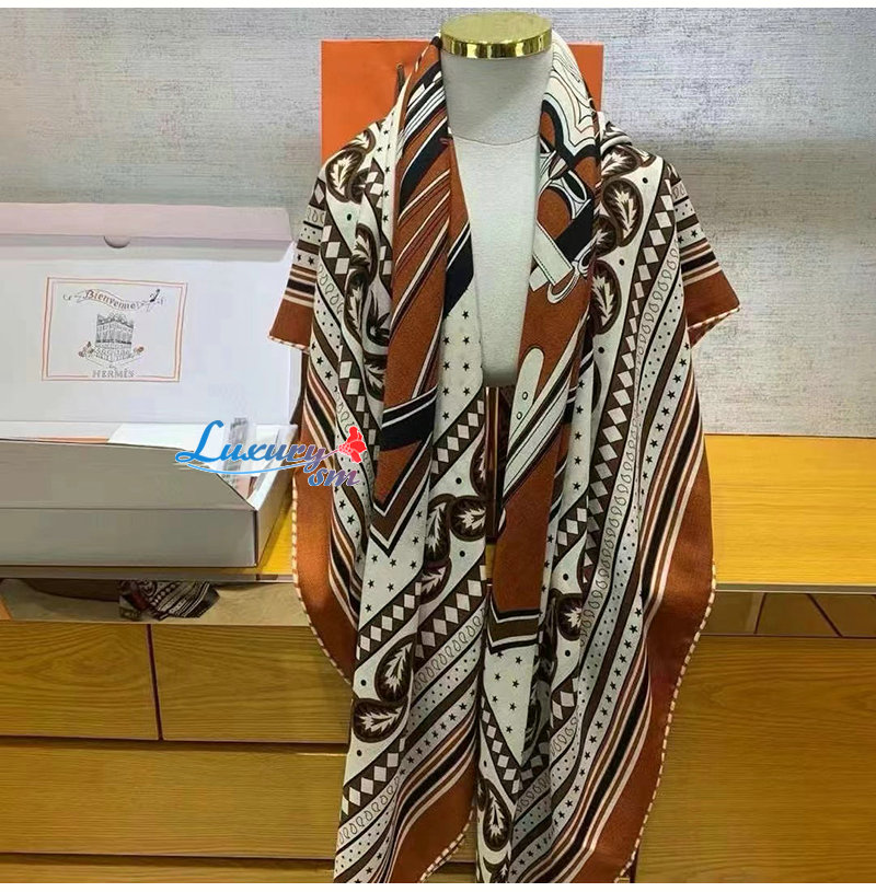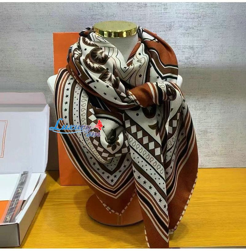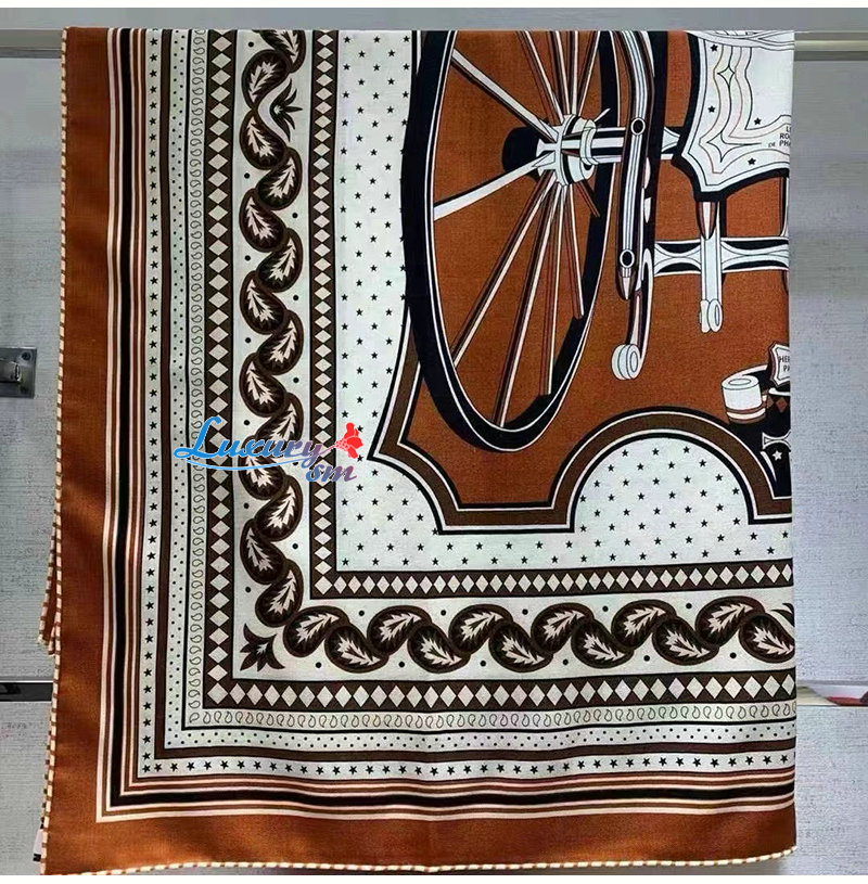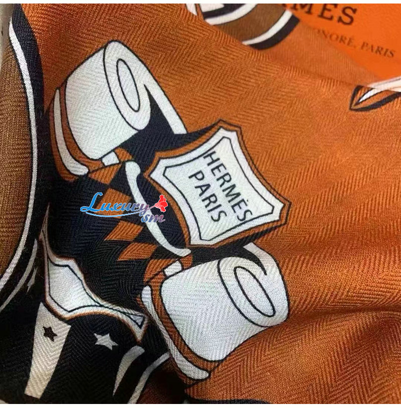 HERMES-H244170S 에르메스 오렌지 Les Roues de Phaeton Bandana 숄140
