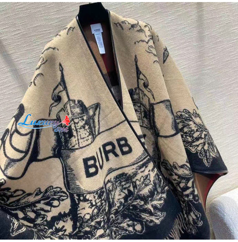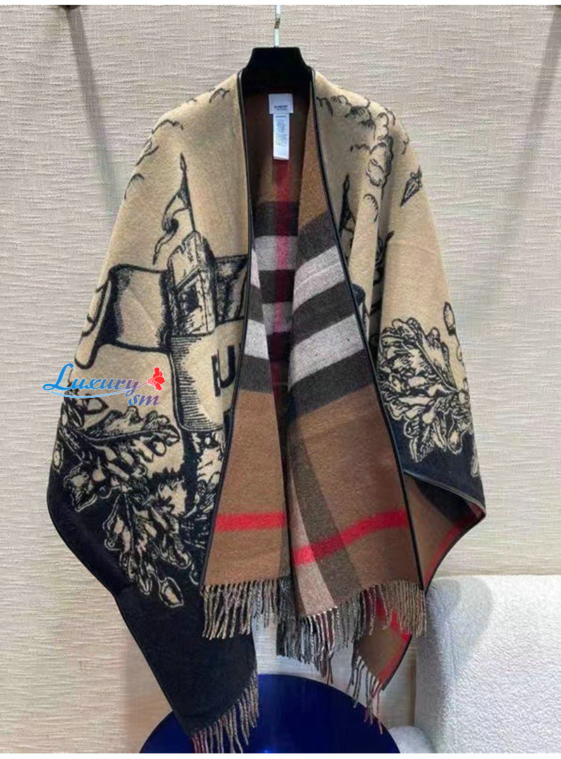 BURBERRY-80748751 버버리 베이지 리버시블 EKD 체크 울 케이프