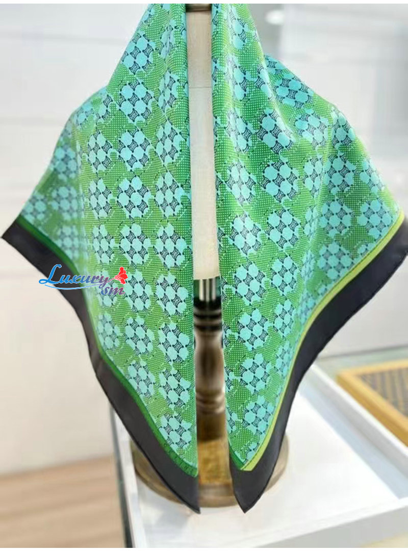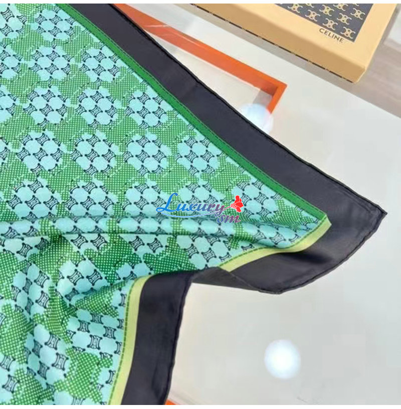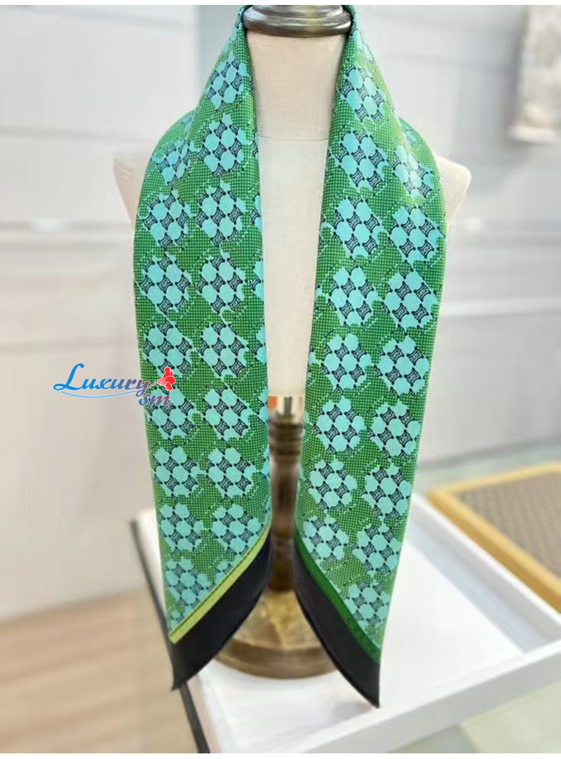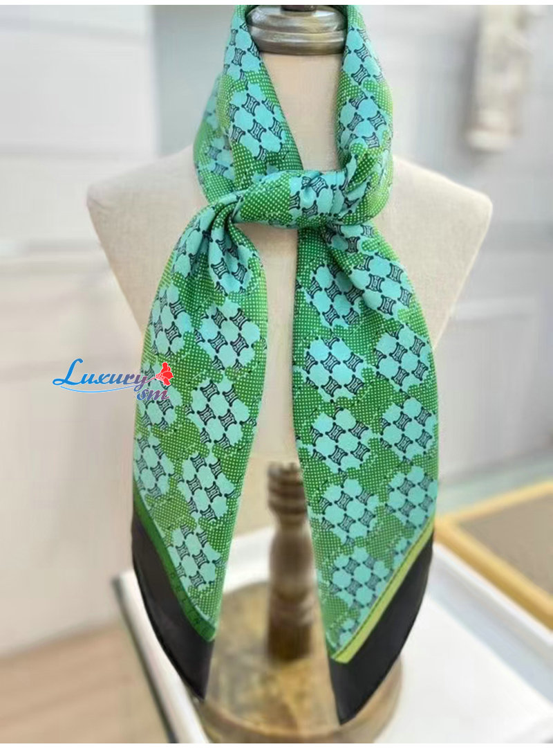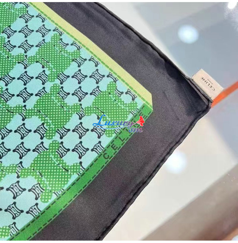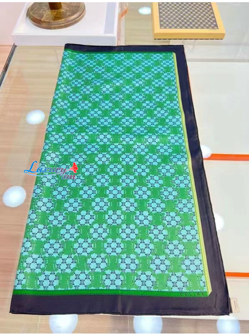 CELINE-02206 셀린느 그린 트리옹프 실크 스카프