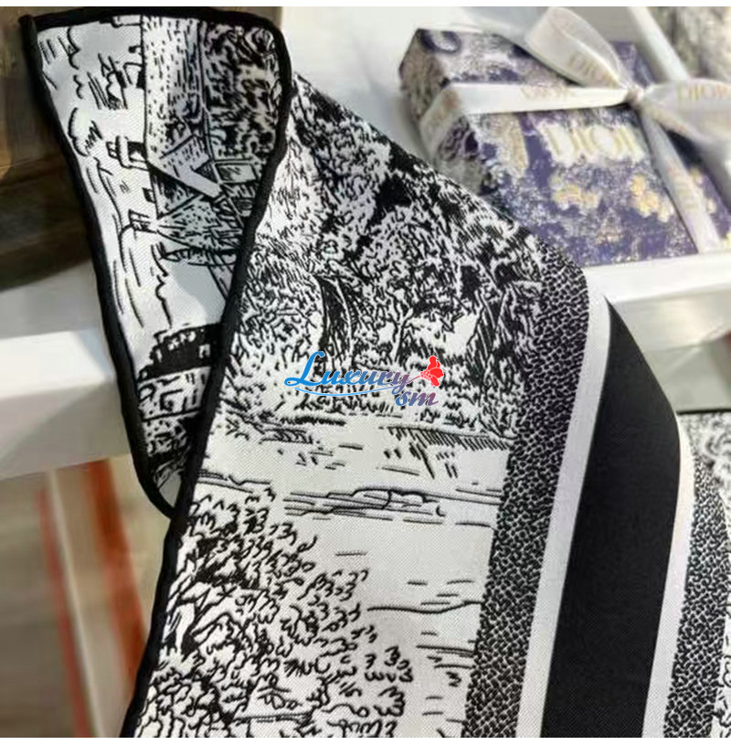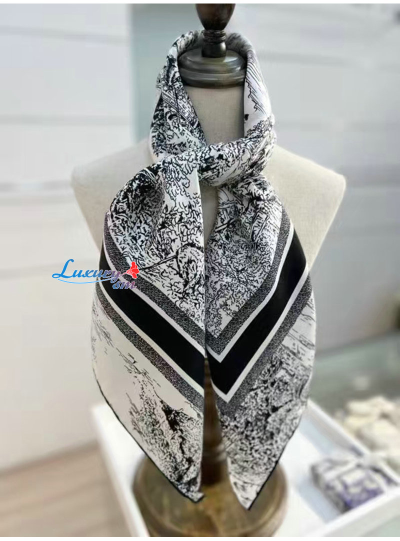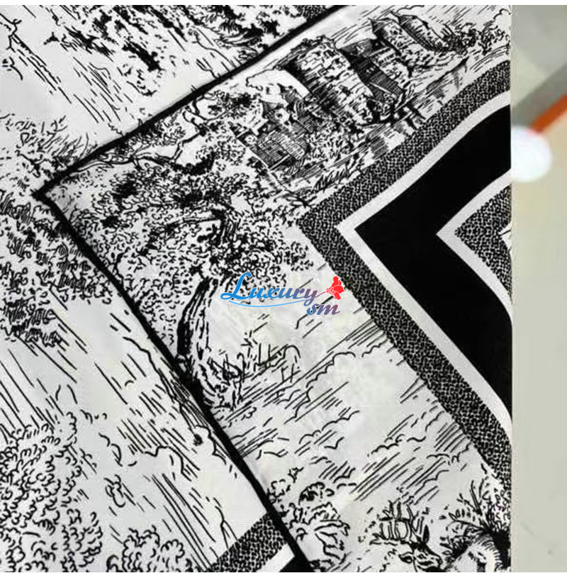 DIOR-51SCO0 디올 블랙 Toile de Jouy Scotland 90 스퀘어 스카프