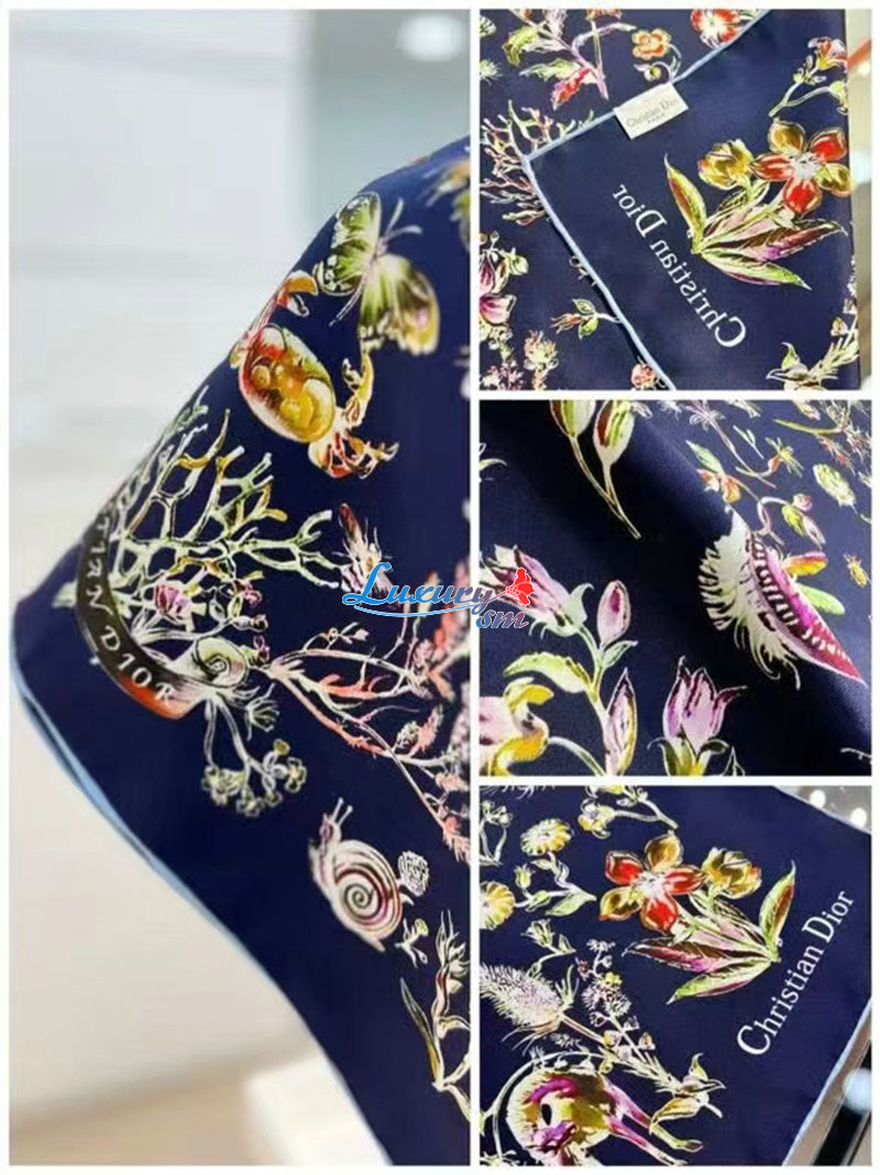 DIOR-51CAB0 디올 네이비 Dior Cabinet de Curiosites 스퀘어 스카프