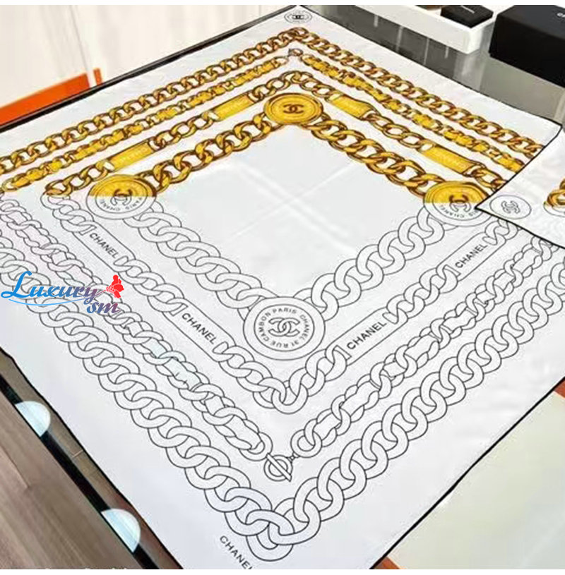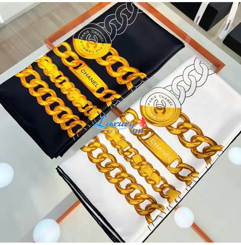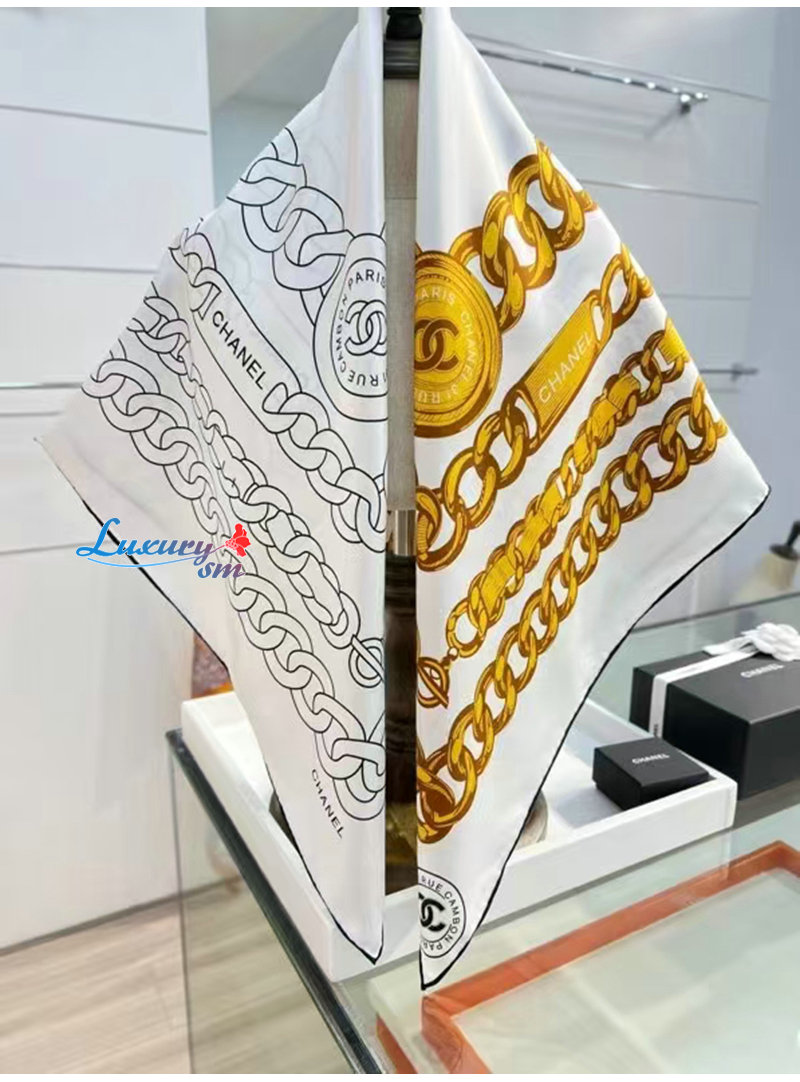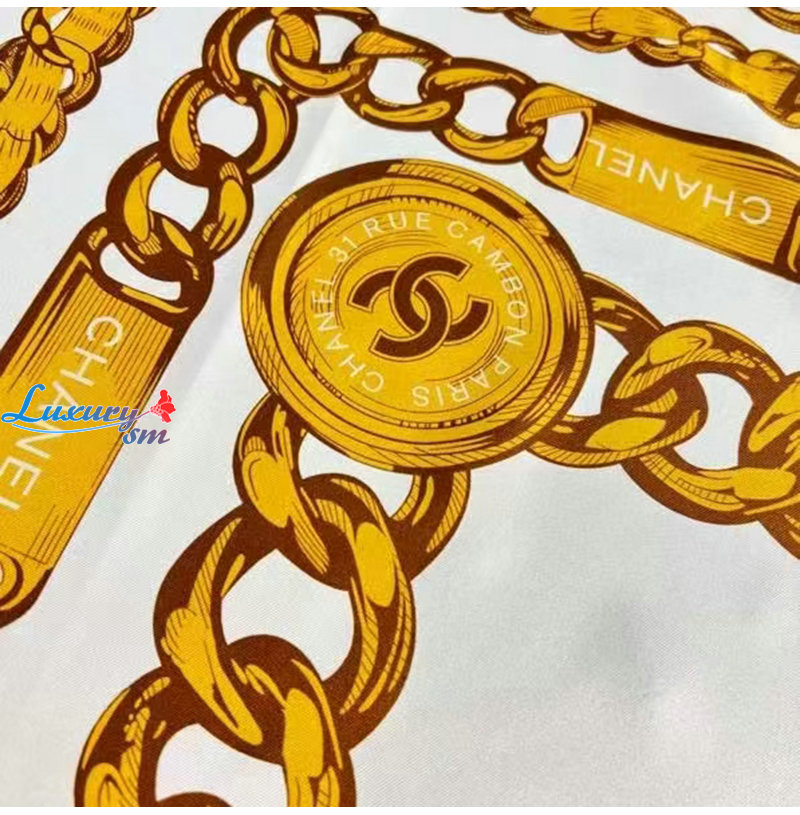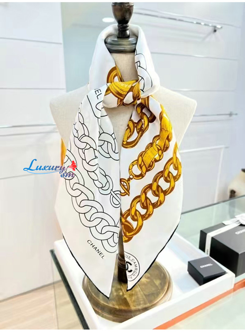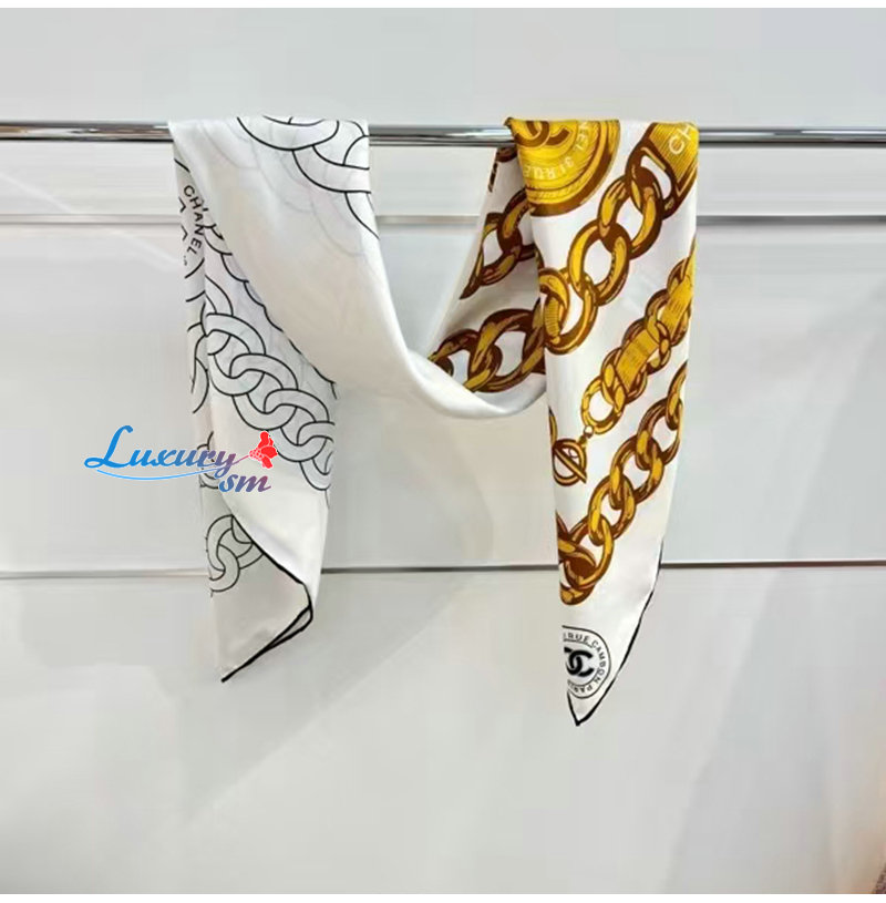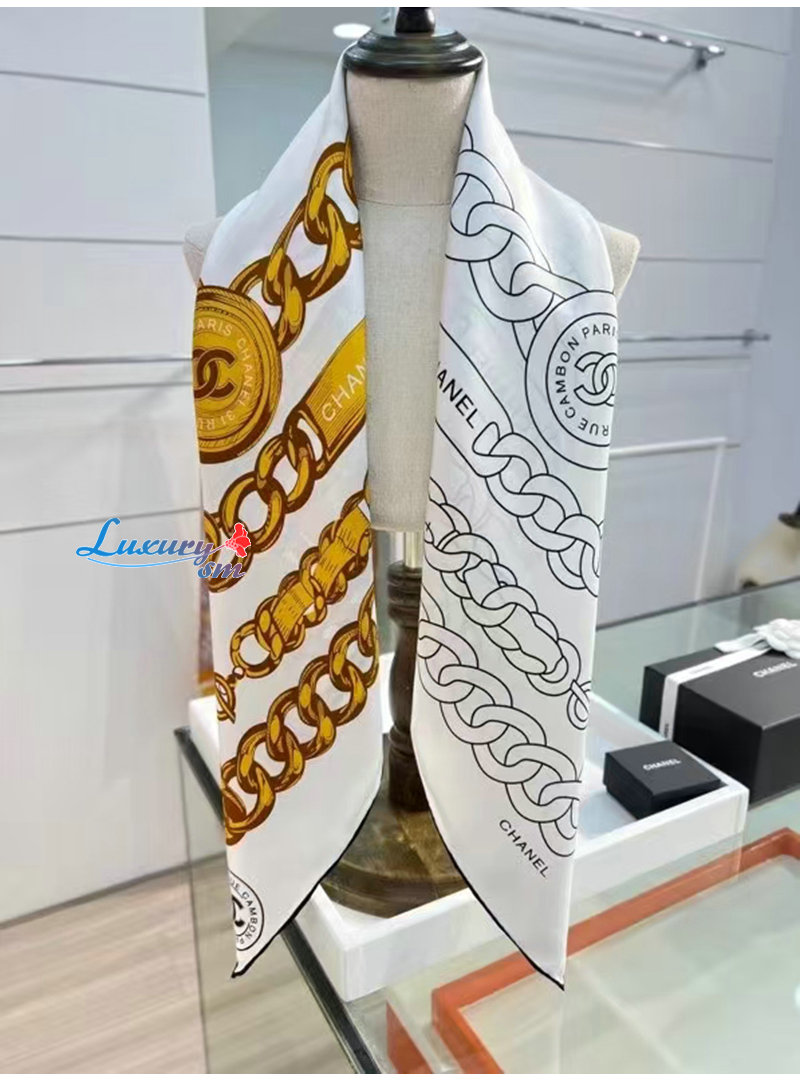 CHANEL-02192 샤넬 화이트 체인 프린트 실크 스카프