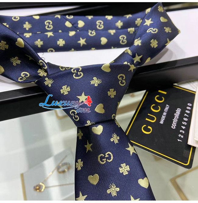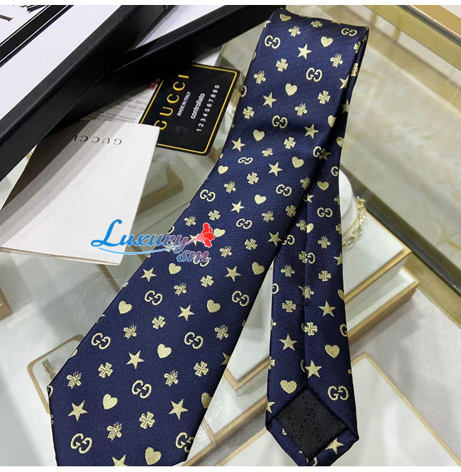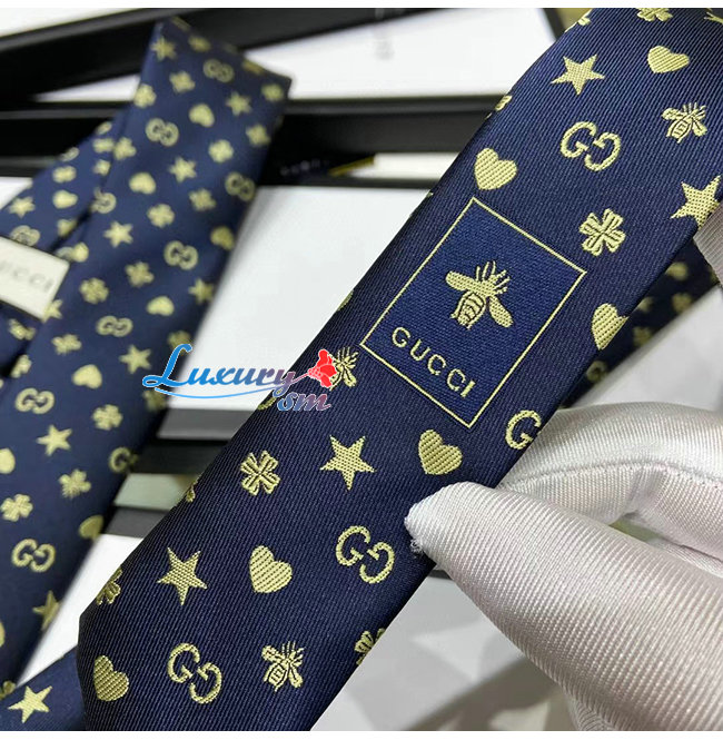 GUCCI-520917 4374 구찌 네이비 실크 아플리케 디테일 넥타이