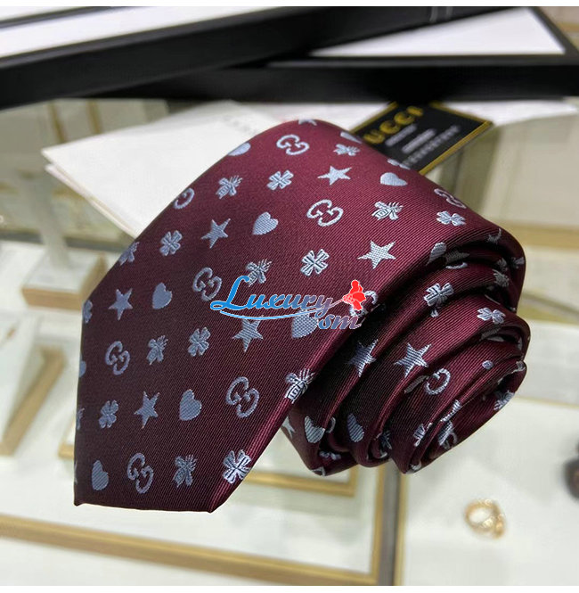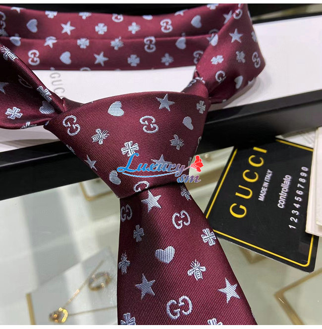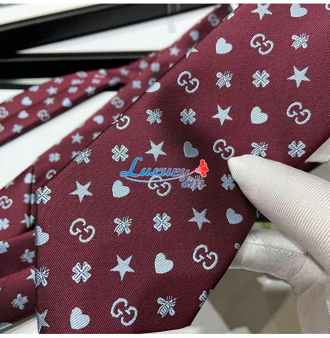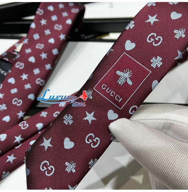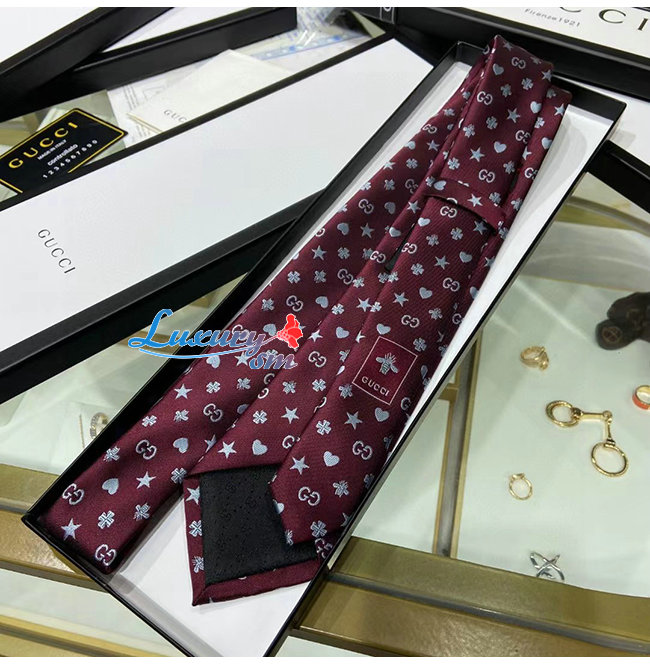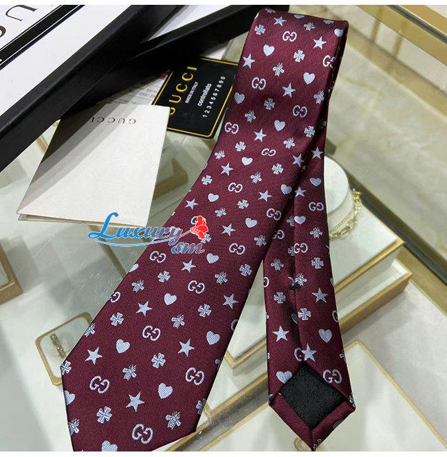 GUCCI-545834 6169 구찌 버건디 실크 아플리케 디테일 넥타이