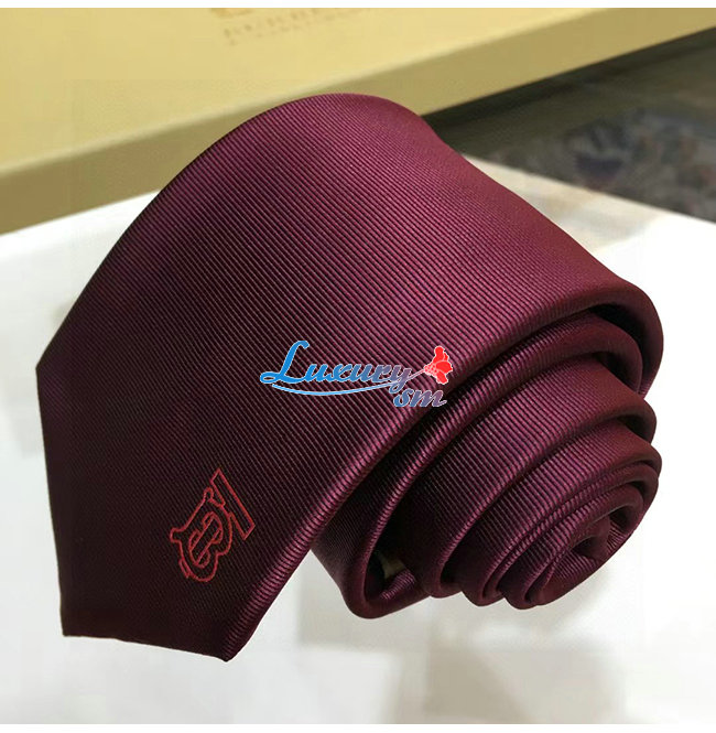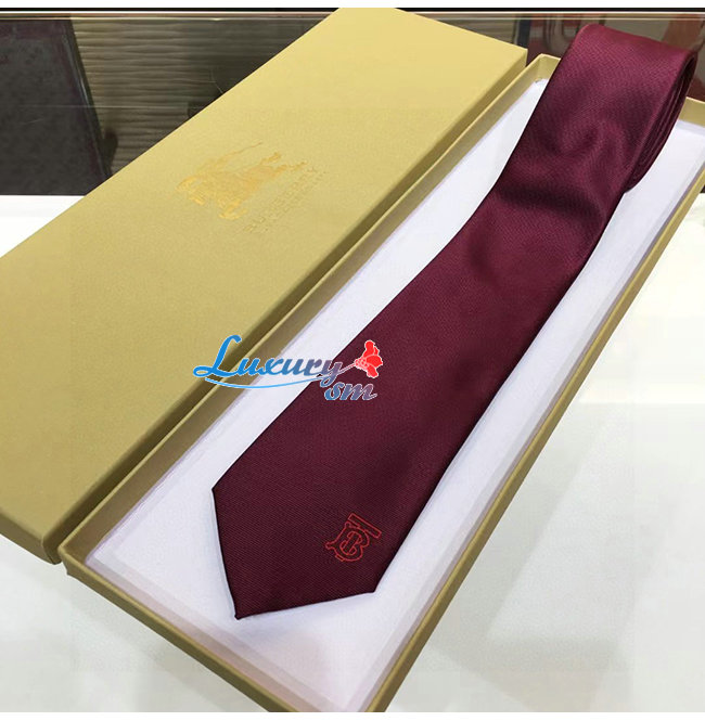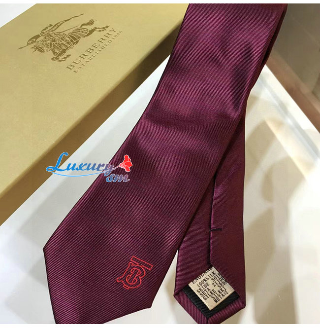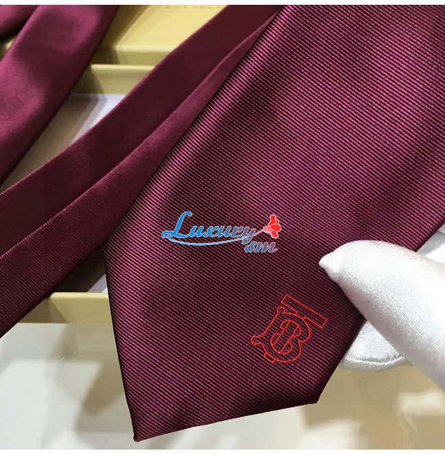 BURBERRY-12192 버버리 버건디 실크 TB 로고 디테일 넥타이