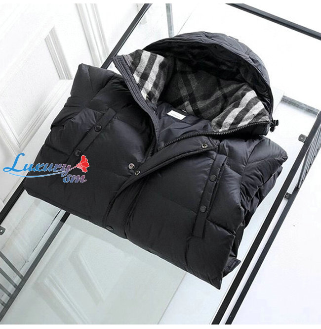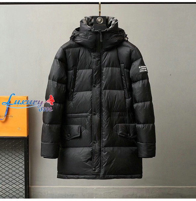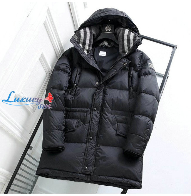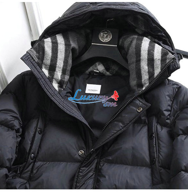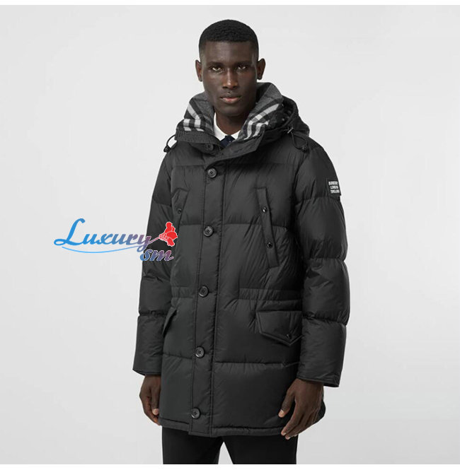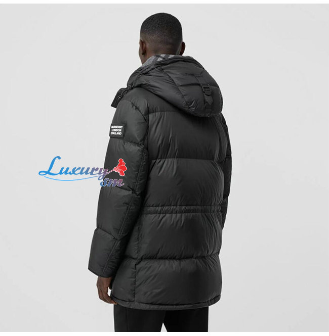 BURBERRY-80188251 버버리 블랙 로고 디테일 후드 패딩 코트 남성용