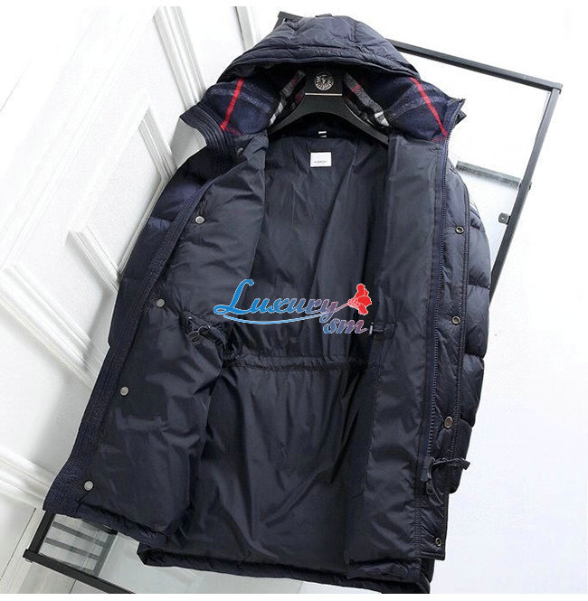 BURBERRY-80188261 버버리 네이비 로고 디테일 후드 패딩 코트 남성용