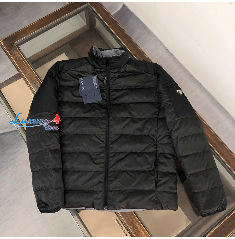 PRADA-11105 프라다 블랙/그레이 트라이앵글 로고 양면 패딩 남성용