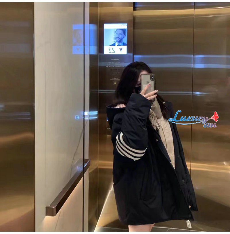 THOM BROWNE-11274 톰 브라운 블랙 스트라이프 장식 파카 남여공용