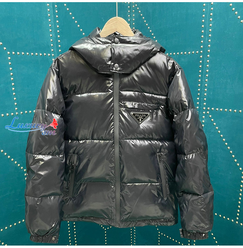 PRADA-12032 프라다 블랙 트라이앵글 로고 패딩 남성용