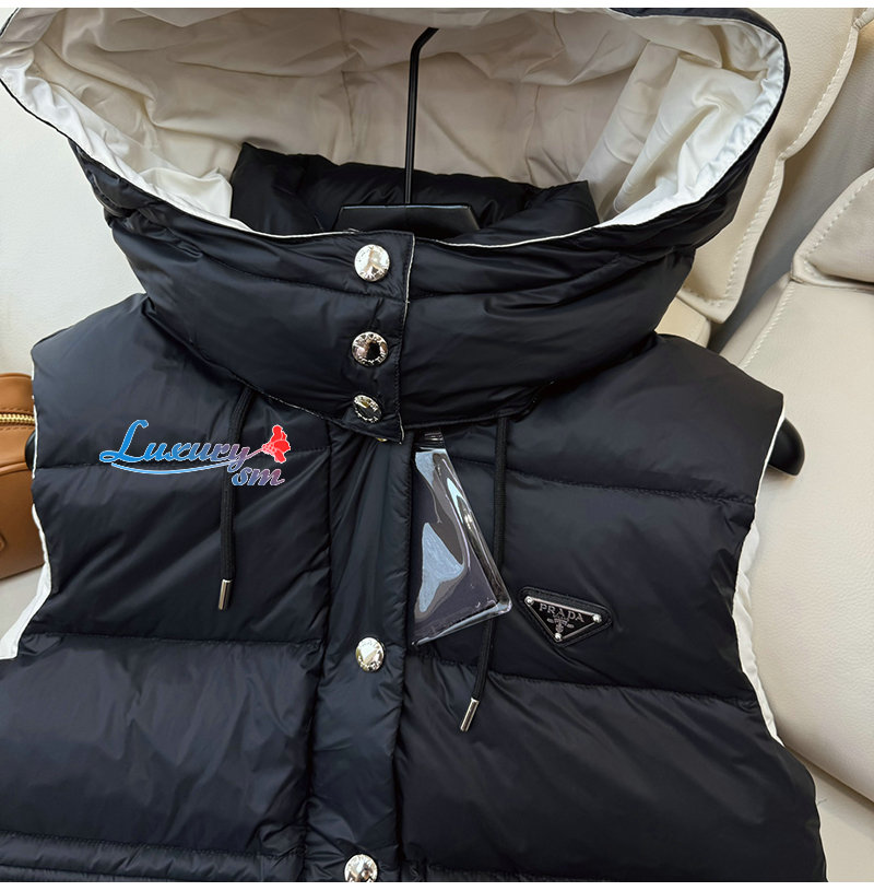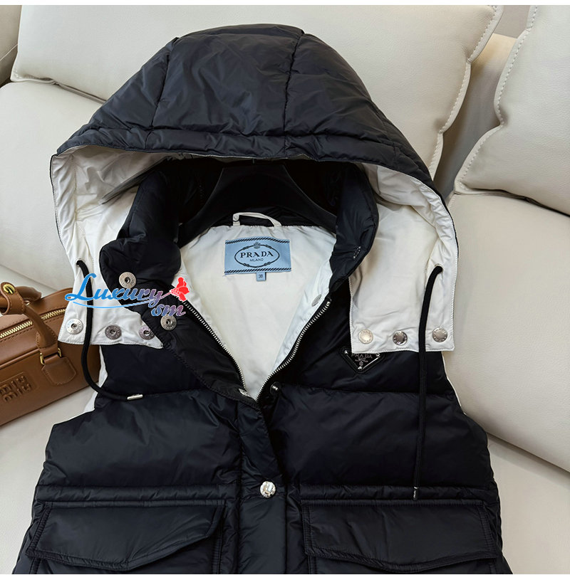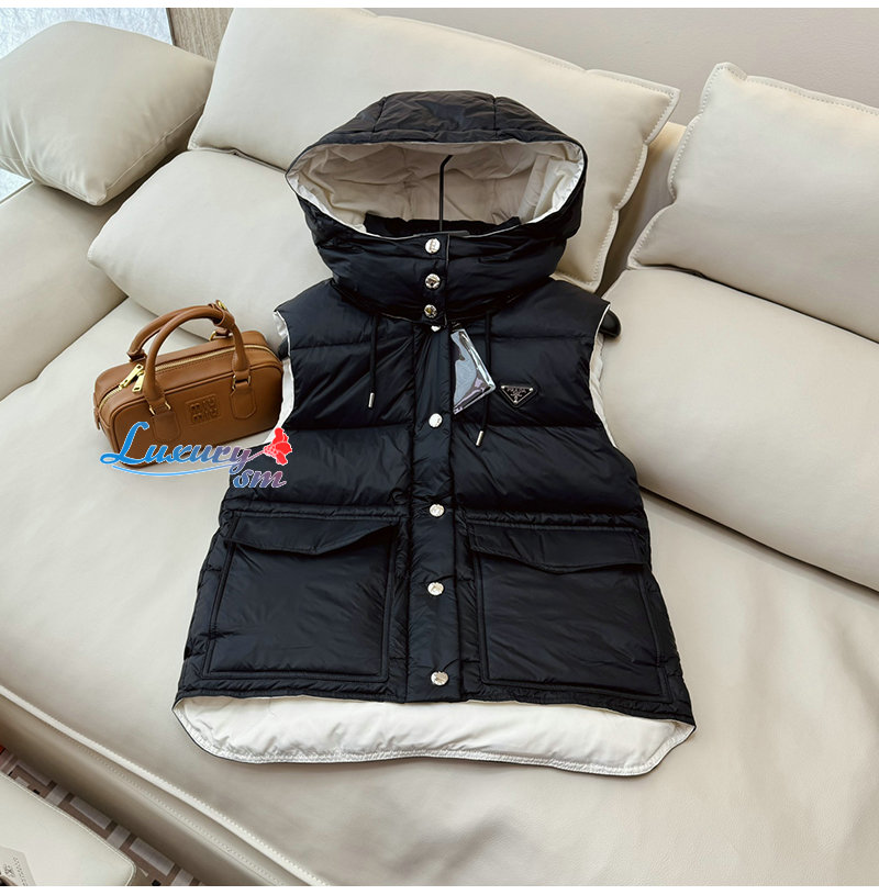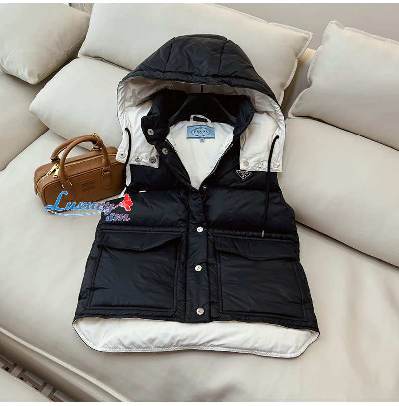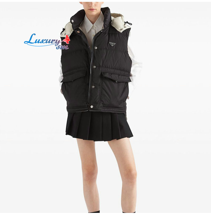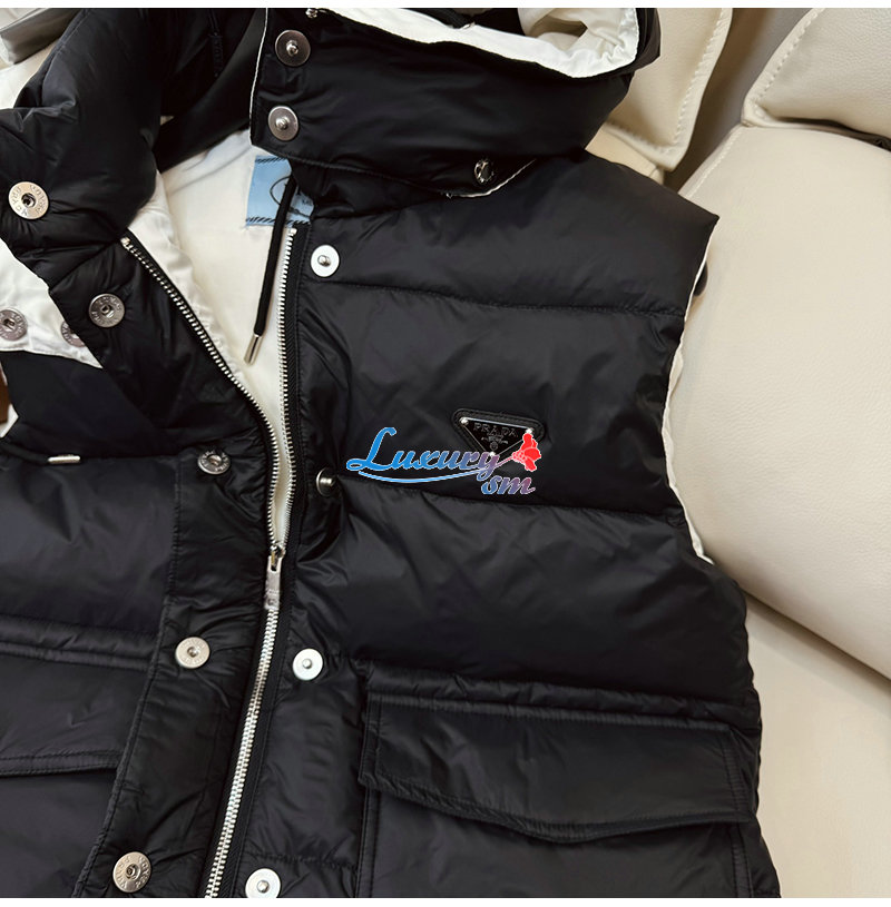 PRADA-11279 프라다 블랙 트라이앵글 로고 패딩 조끼 여성용