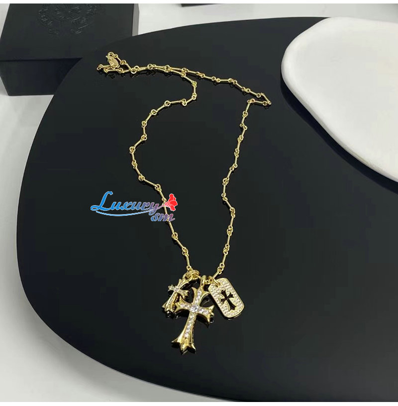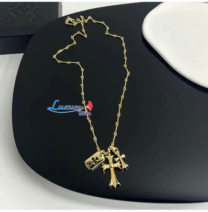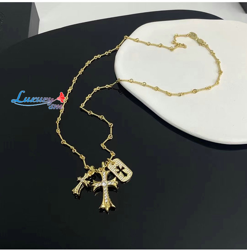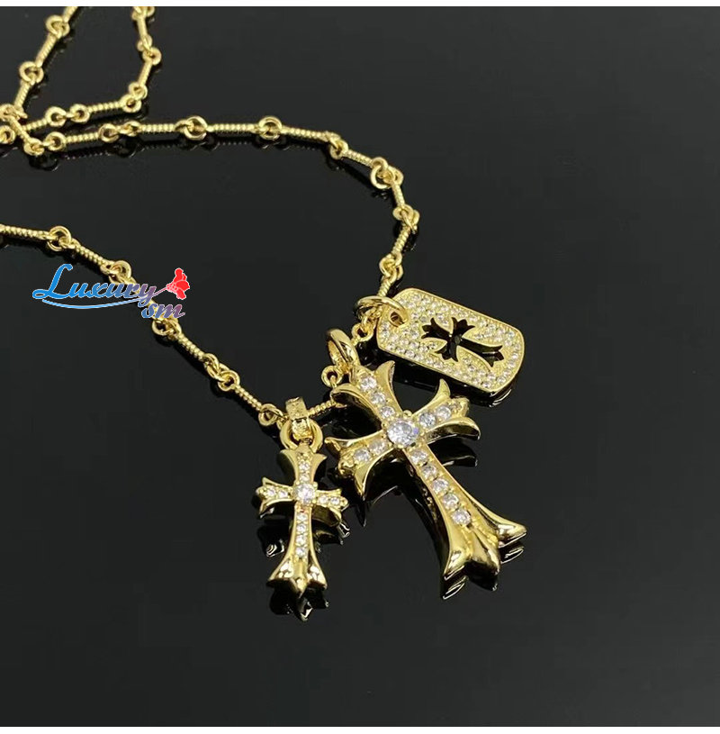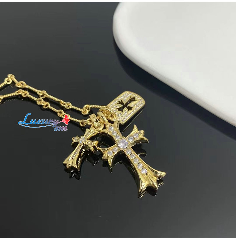 CHROMEHEARTS-6608 크롬하츠 골드 크리스탈 십자가 목걸이