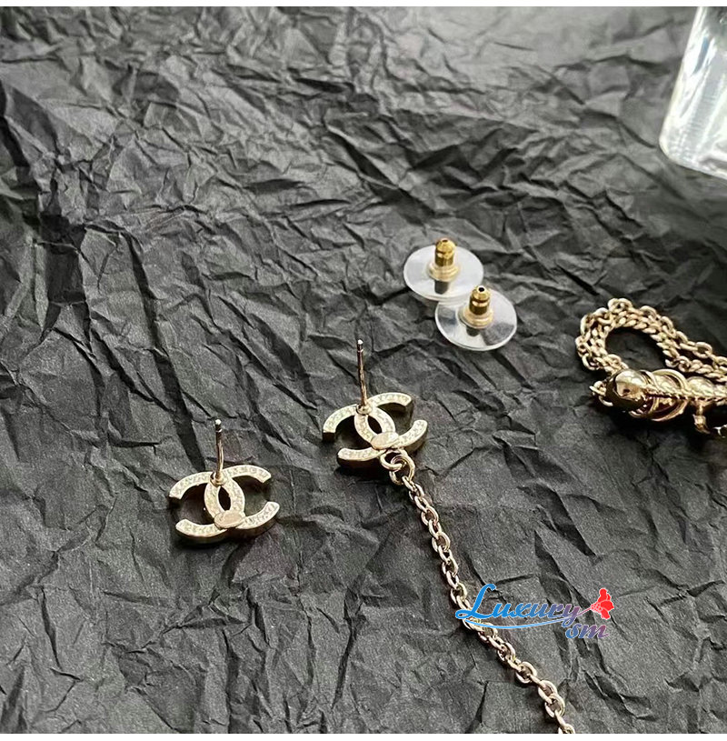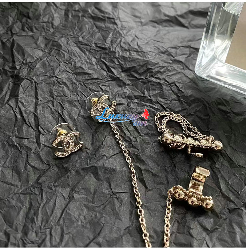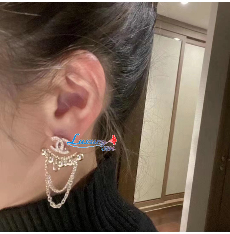 CHANEL-AB7789 샤넬 골드 CC 로고 크리스탈 체인 귀걸이