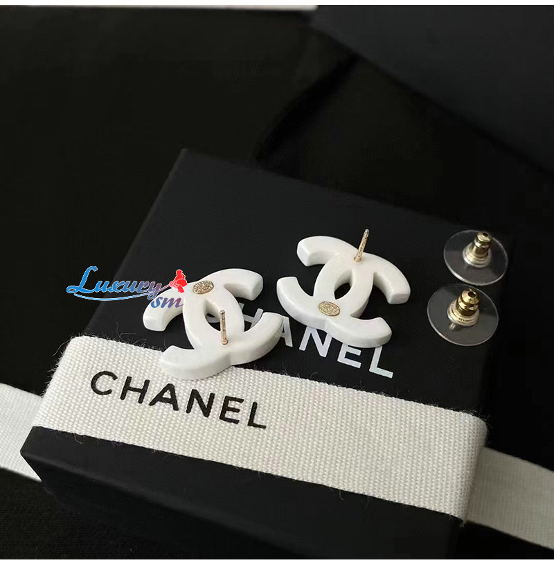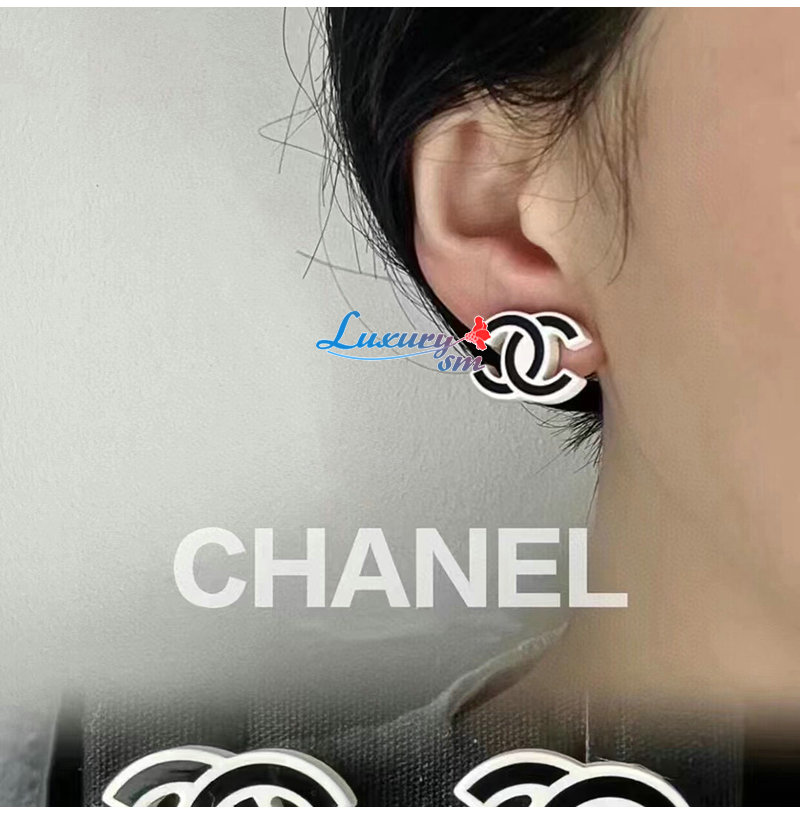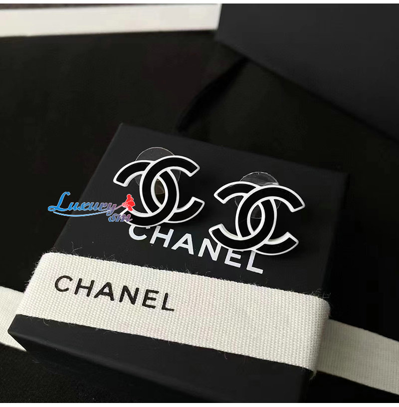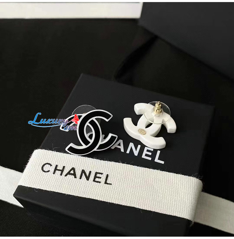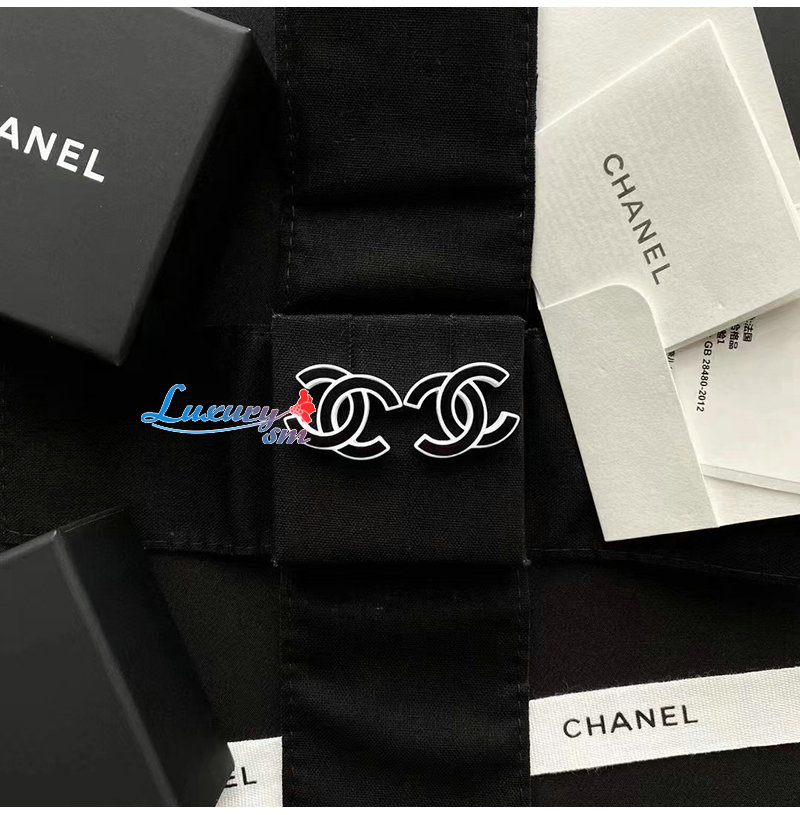 CHANEL-7031 샤넬 블랙/화이트 에나멜 CC 로고 귀걸이