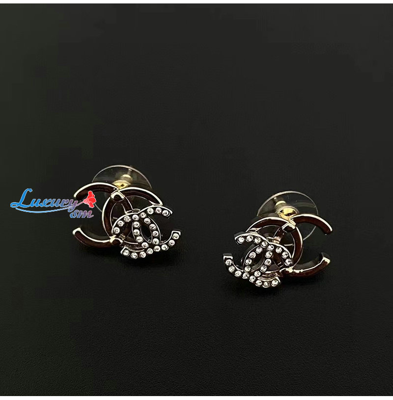 CHANEL-7071 샤넬 골드 크리스탈 장식 CC 로고 귀걸이