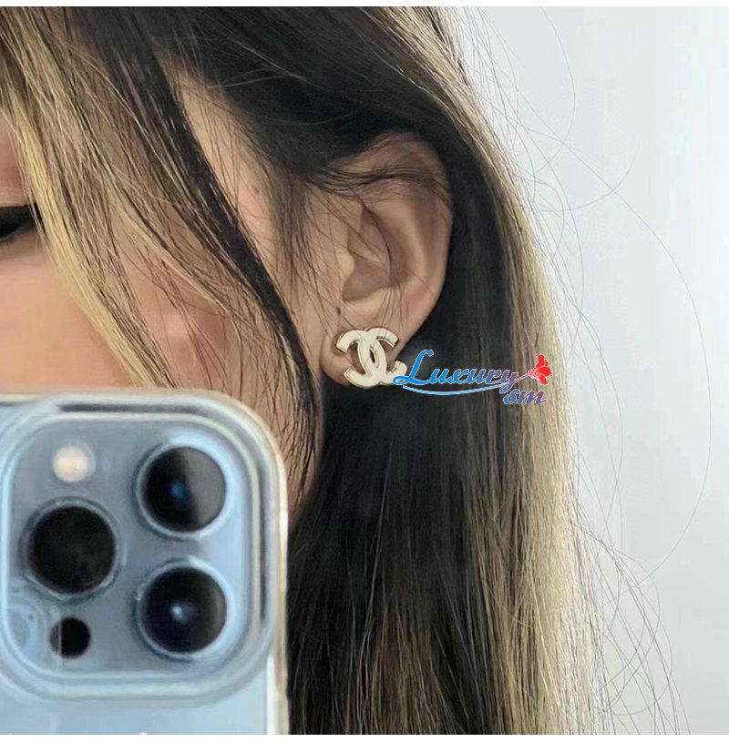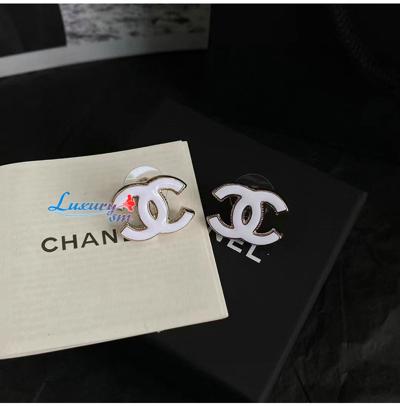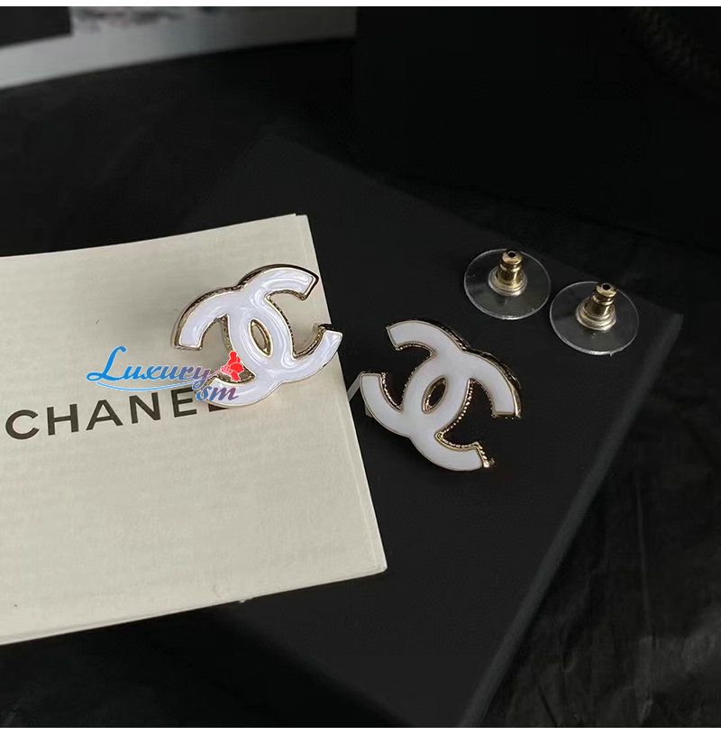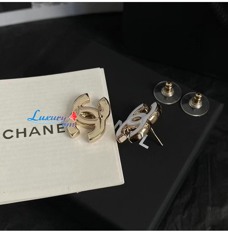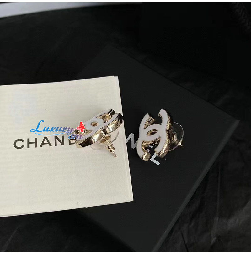 CHANEL-7049 샤넬 화이트/골드 에나멜 CC 로고 귀걸이