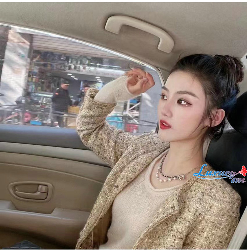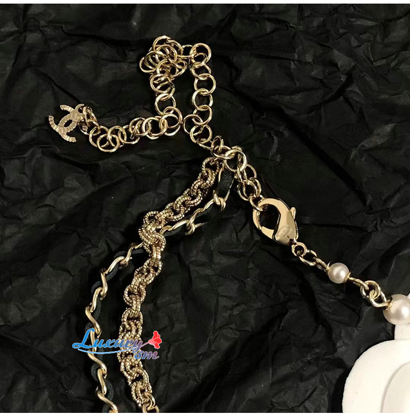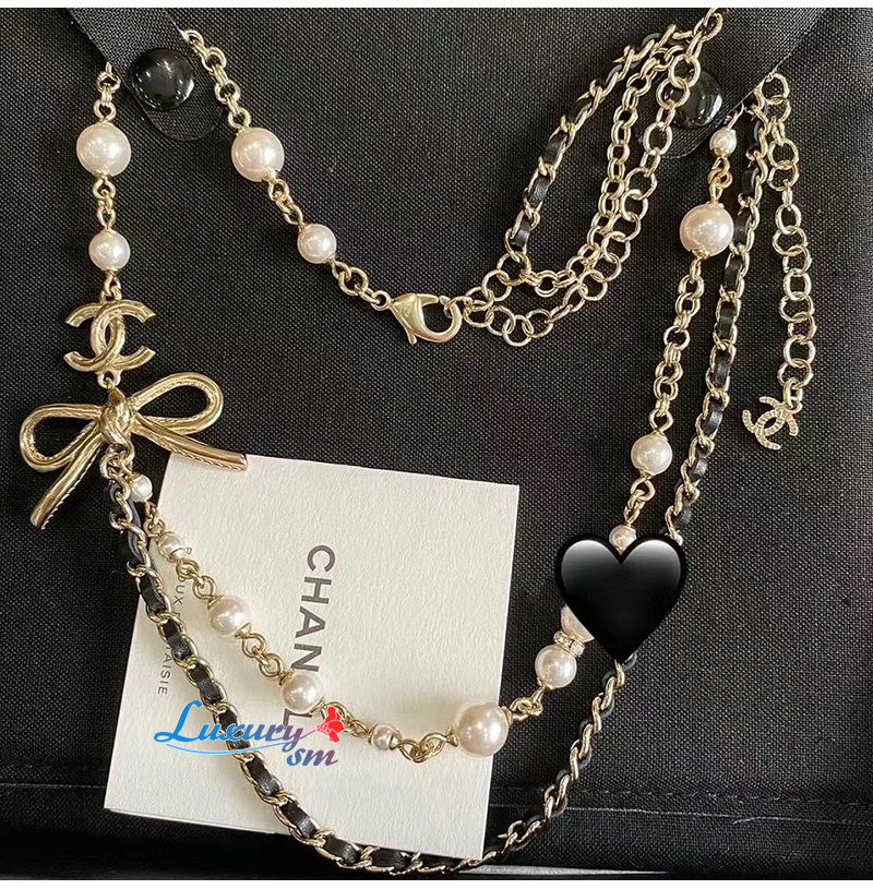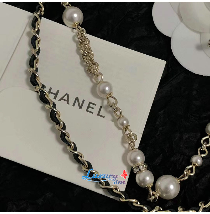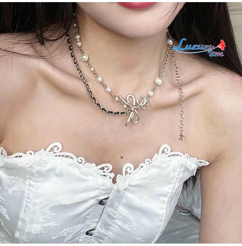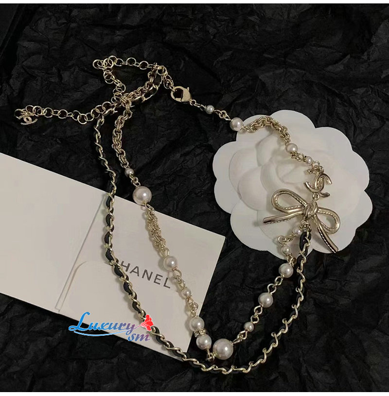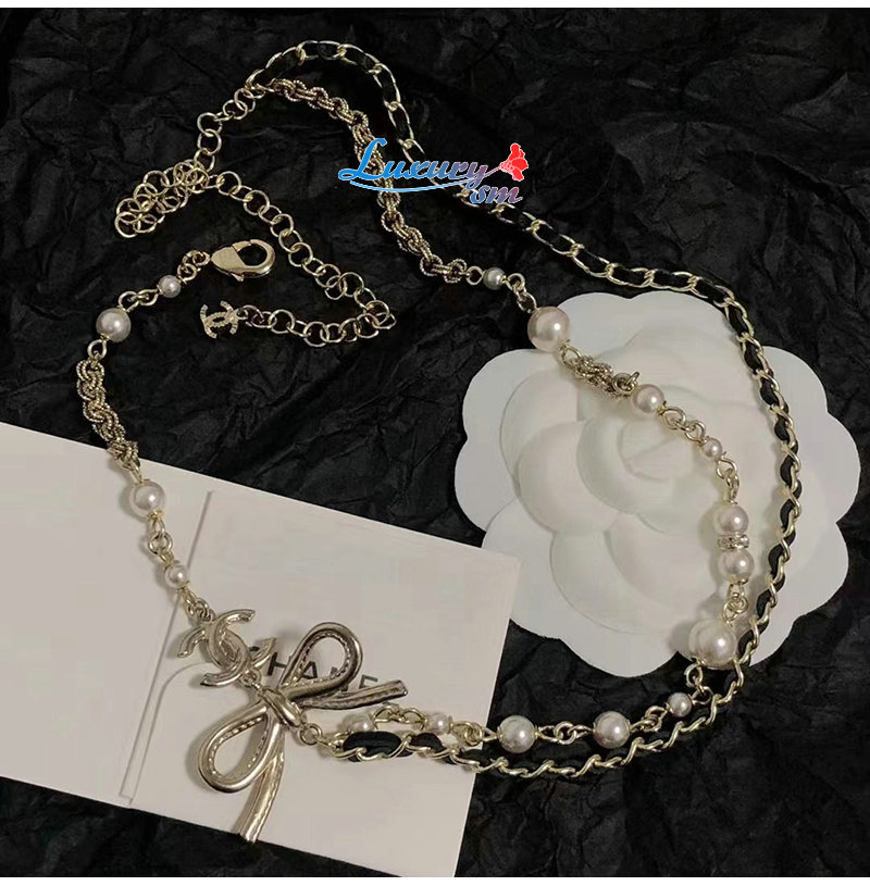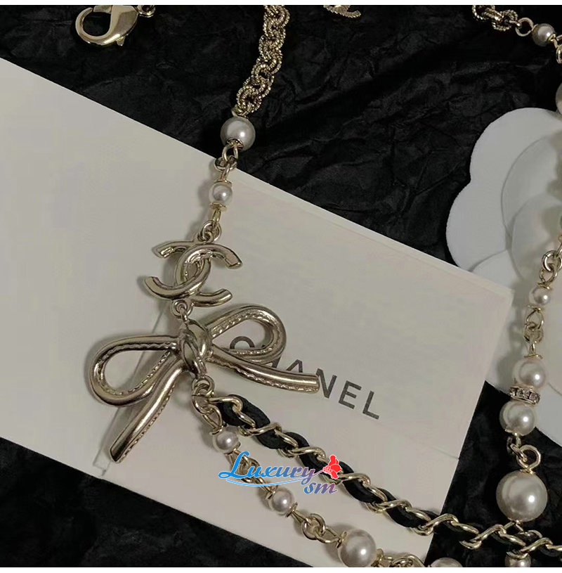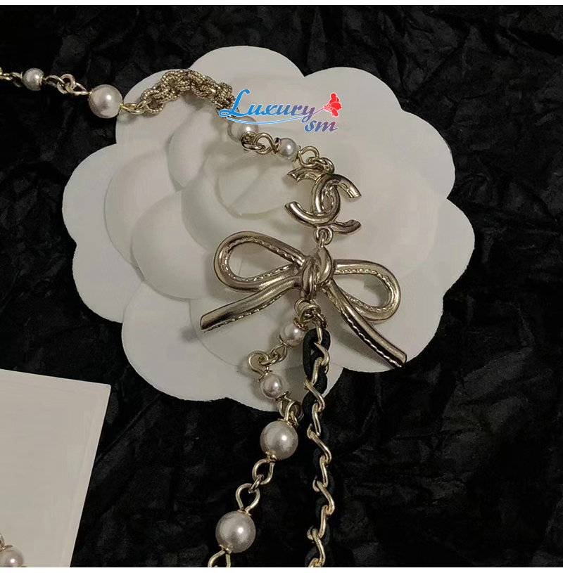 CHANEL-7088 샤넬 골드 레진 진주 리본 장식 목걸이