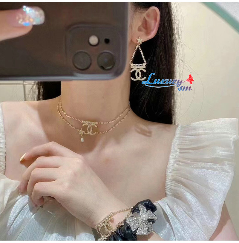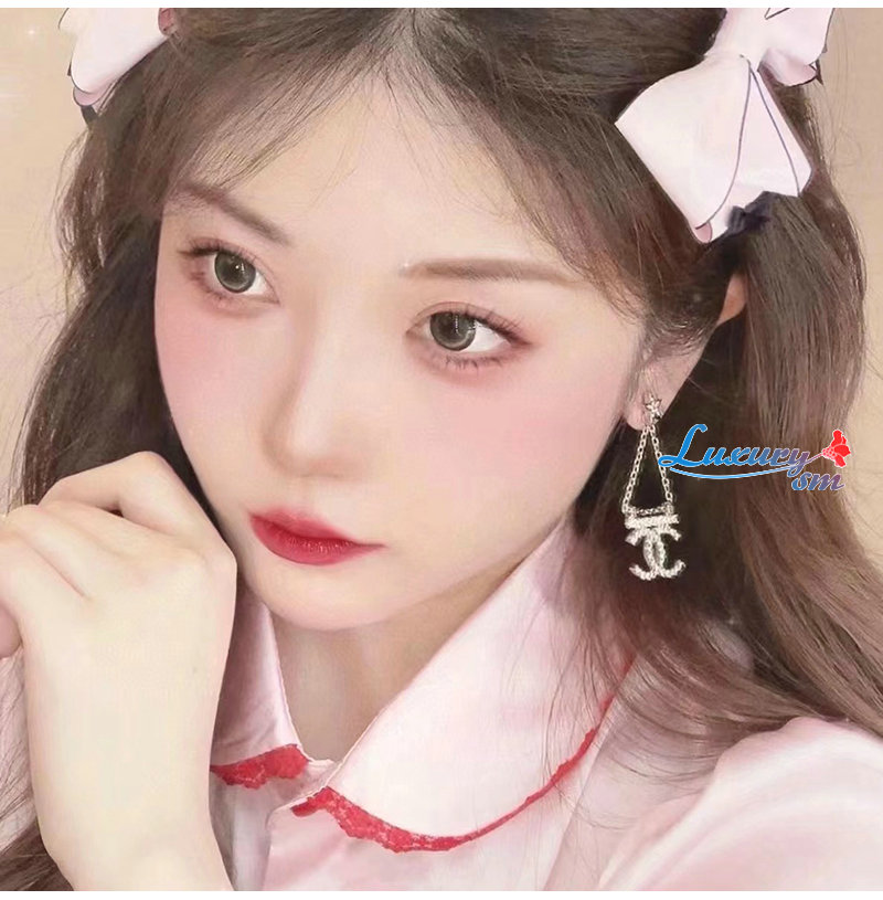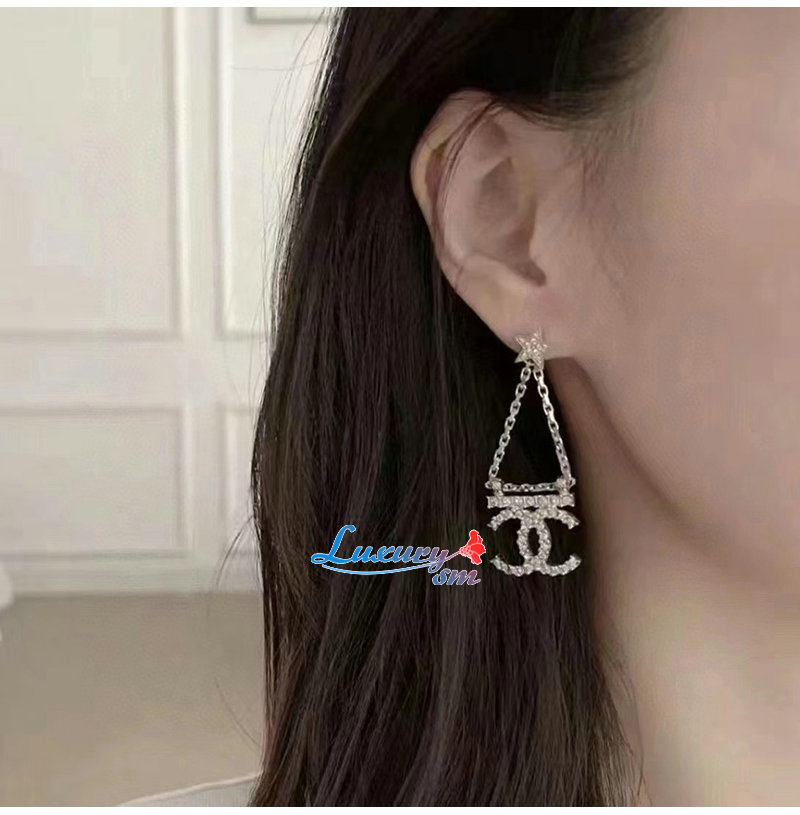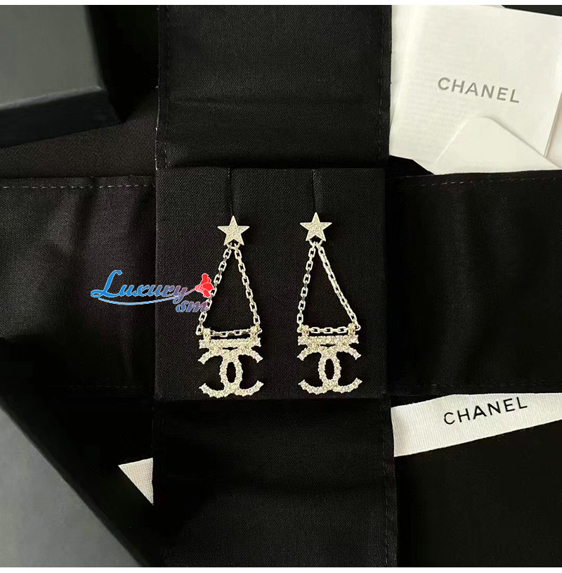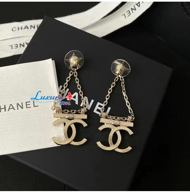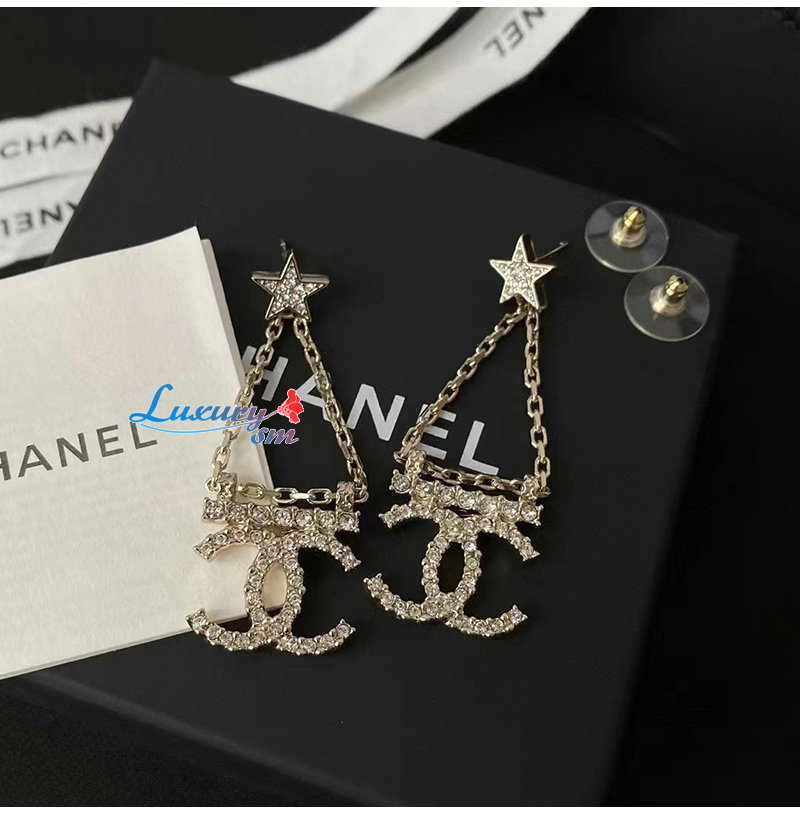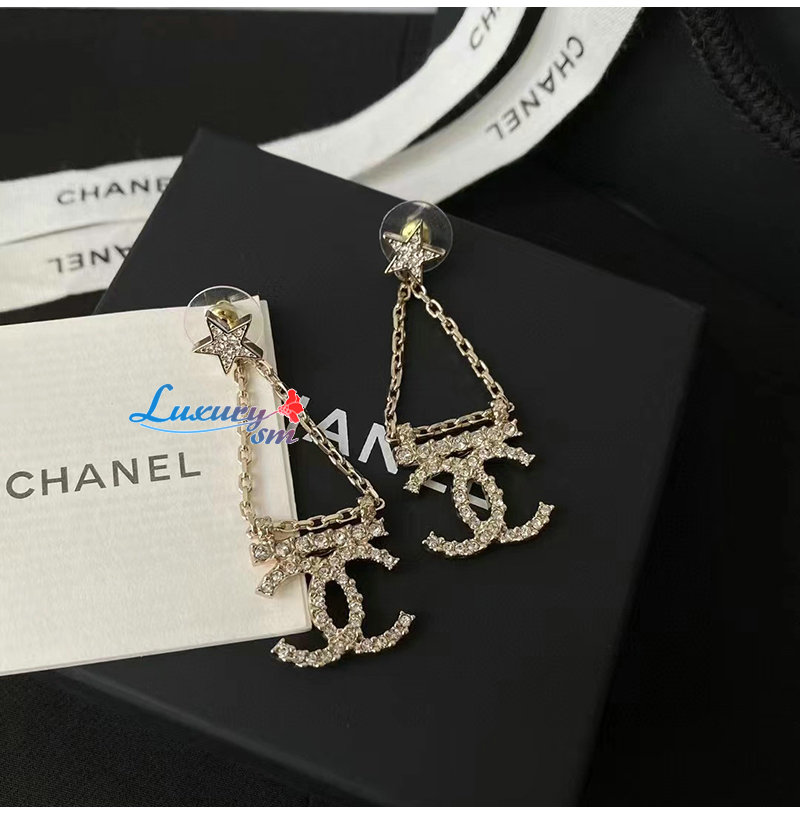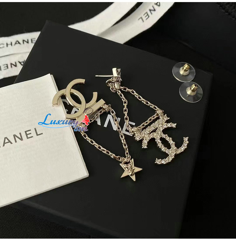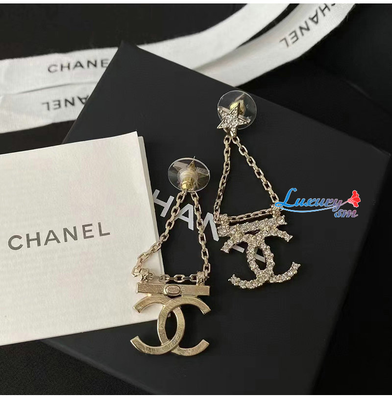 CHANEL-7036 샤넬 골드 크리스탈 체인 CC 로고 귀걸이
