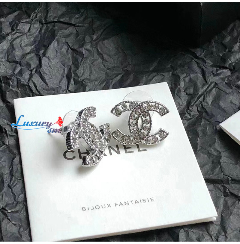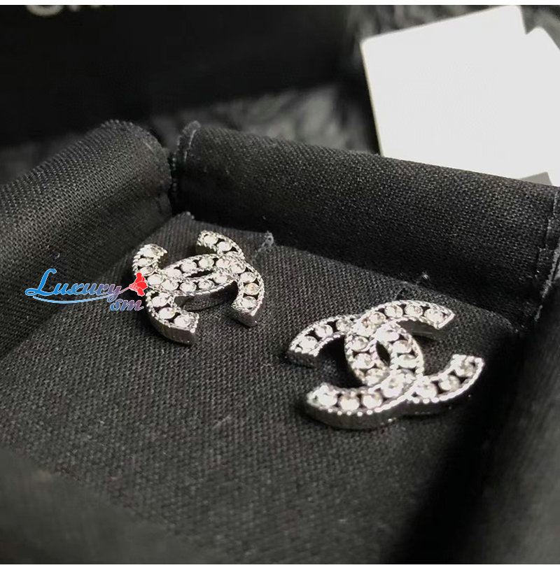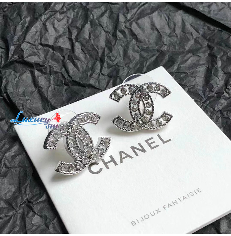 CHANEL-7133 샤넬 실버 크리스탈 장식 CC 로고 귀걸이
