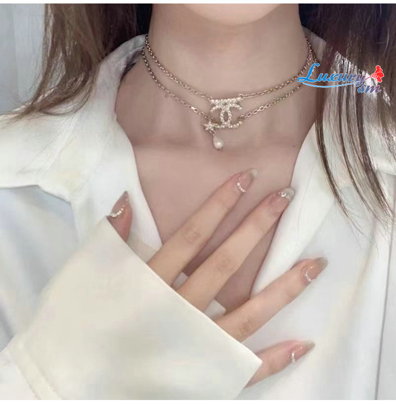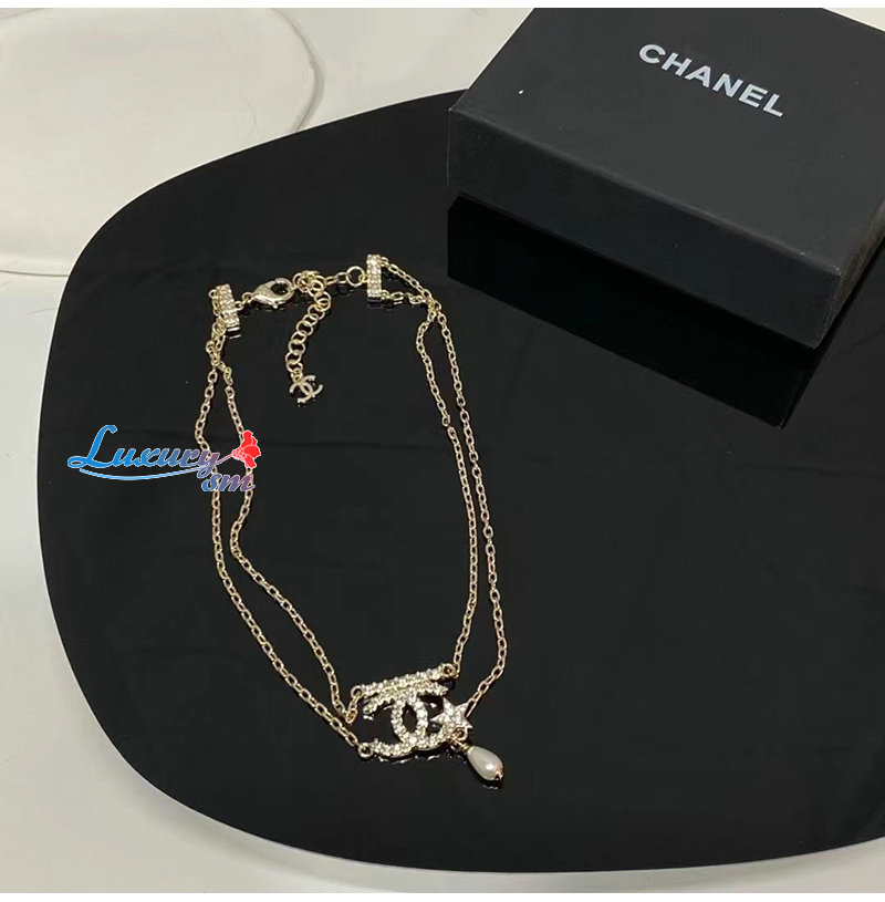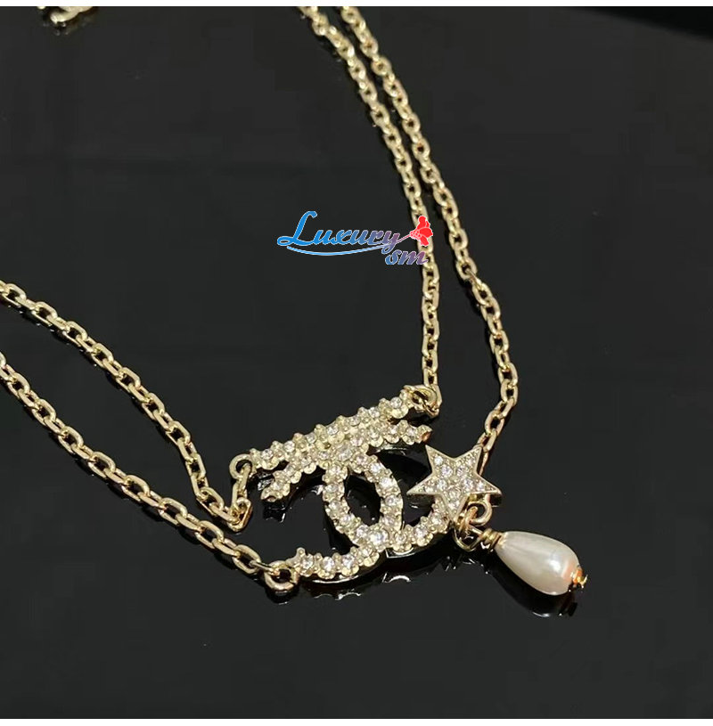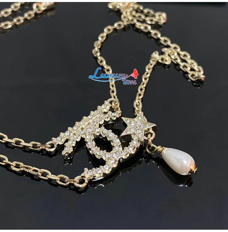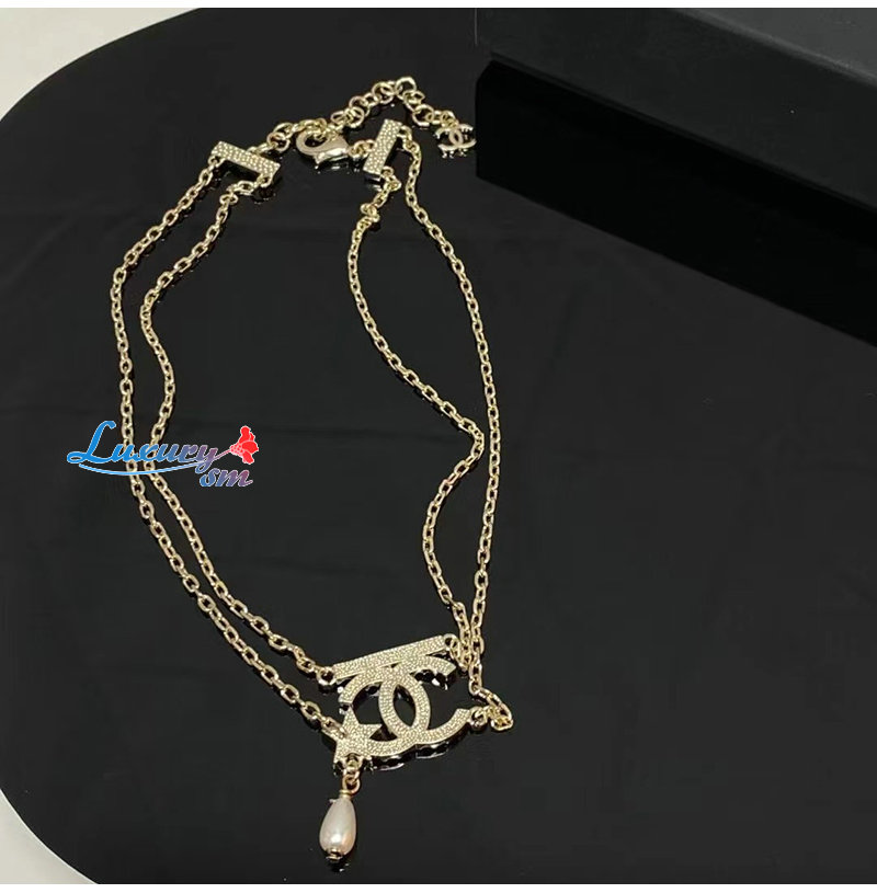 CHANEL-1253 샤넬 골드 크리스탈 장식 CC 로고 목걸이