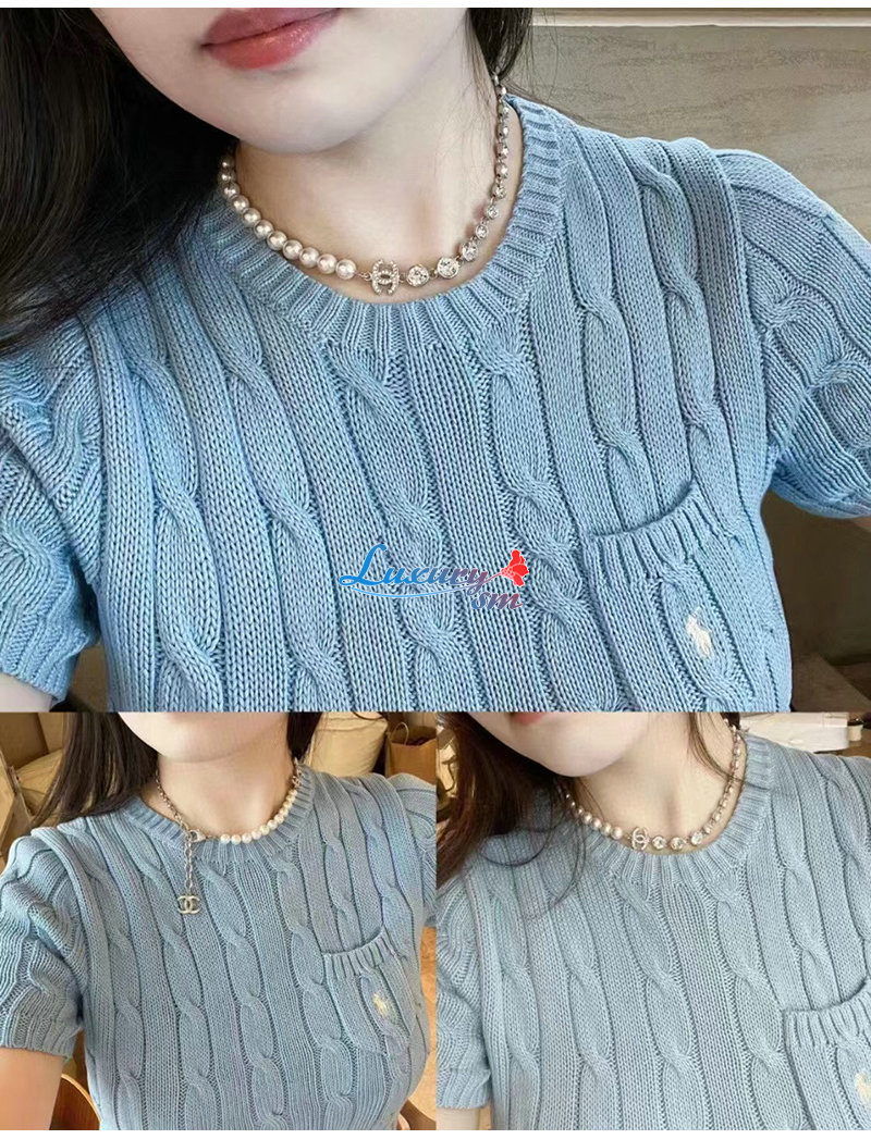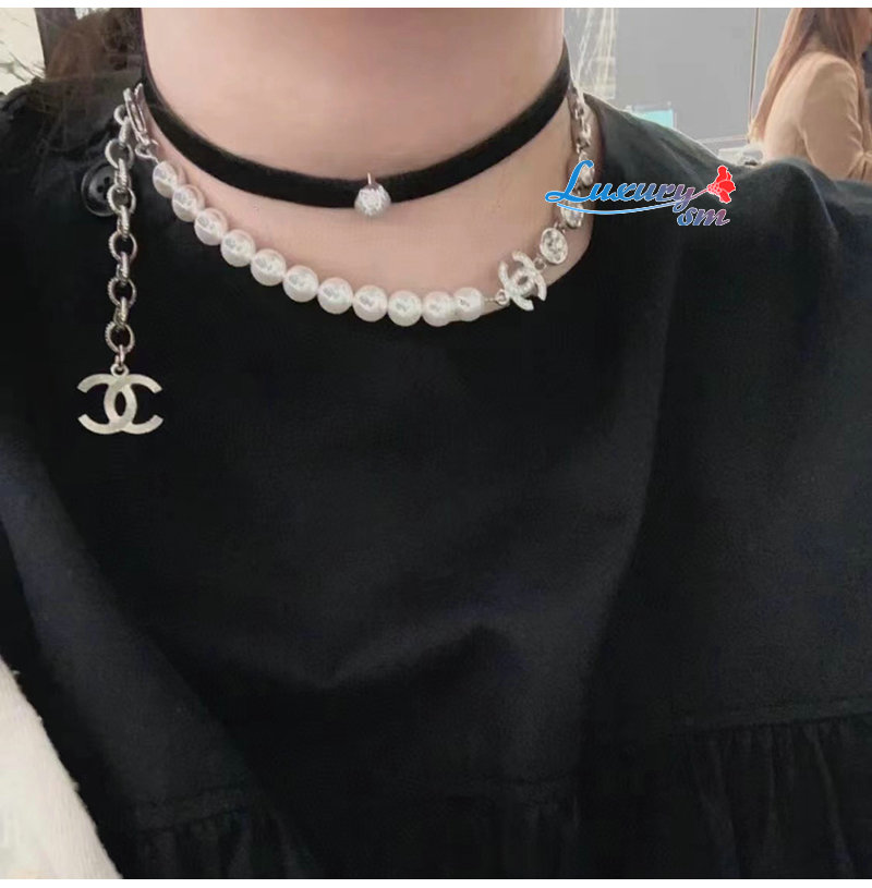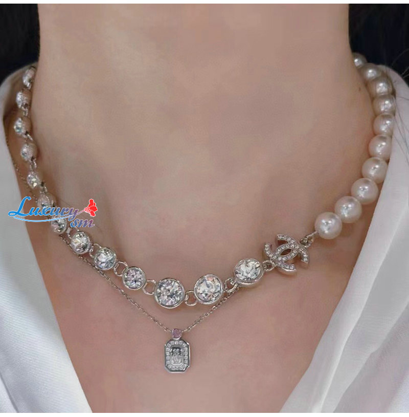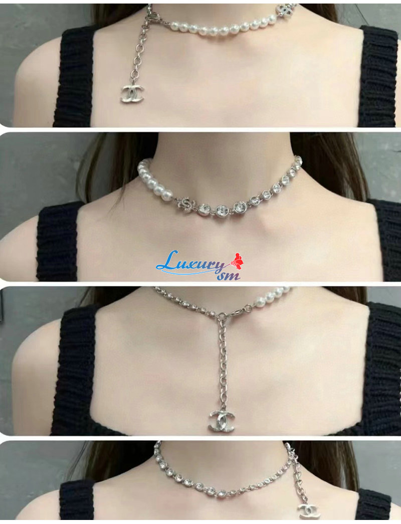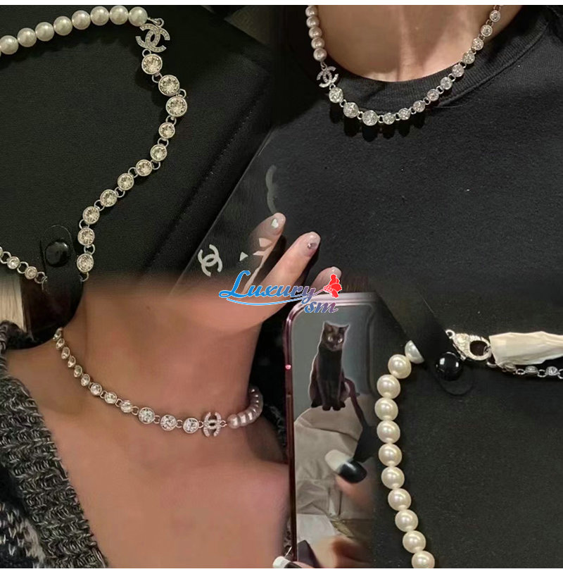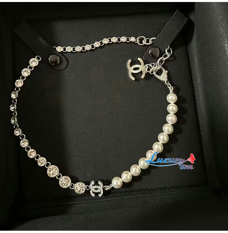 CHANEL-ABA625 샤넬 실버 글래스 펄 스트라스 목걸이
