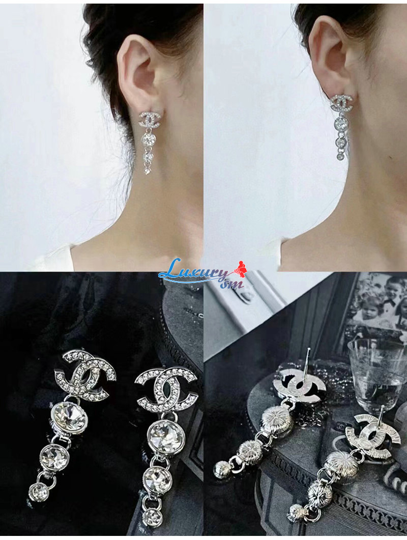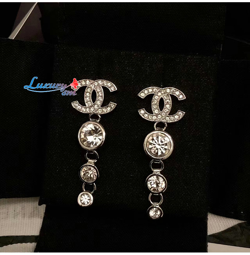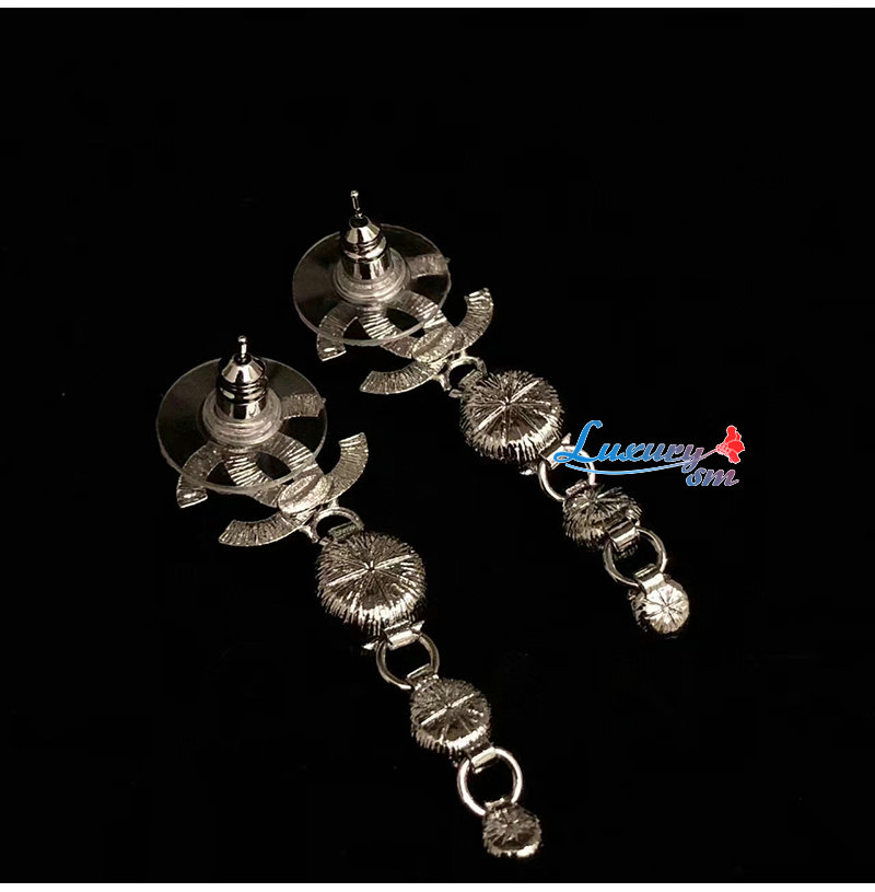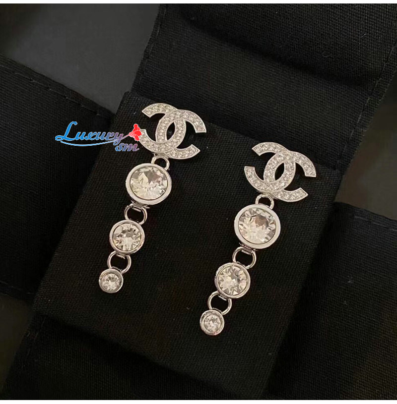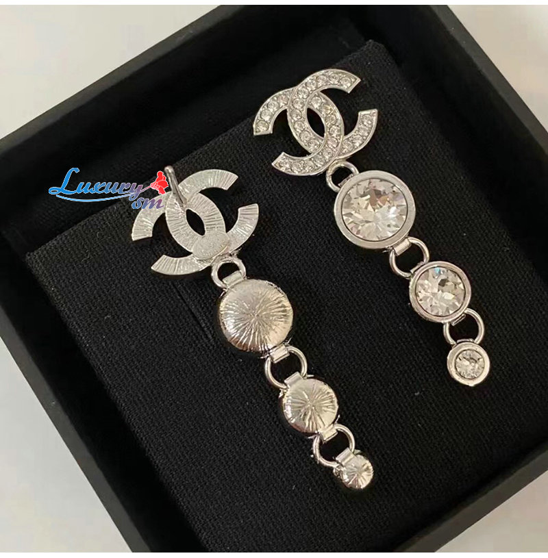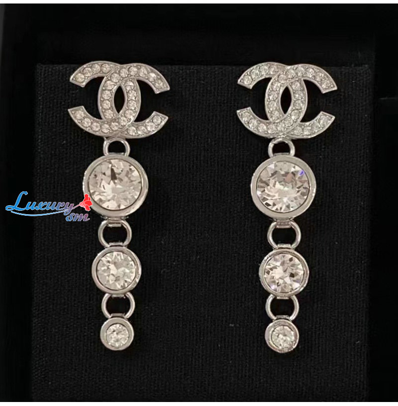 CHANEL-7207 샤넬 실버 크리스탈 장식 CC 로고 귀걸이