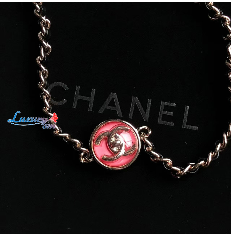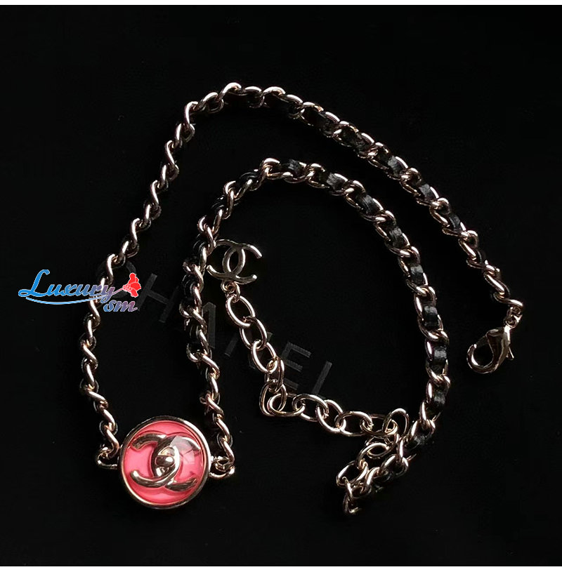 CHANEL-7205 샤넬 골드/핑크 CC 로고 체인 목걸이