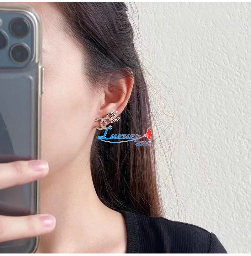 CHANEL-7074 샤넬 골드 크리스탈 장식 CC 로고 귀걸이