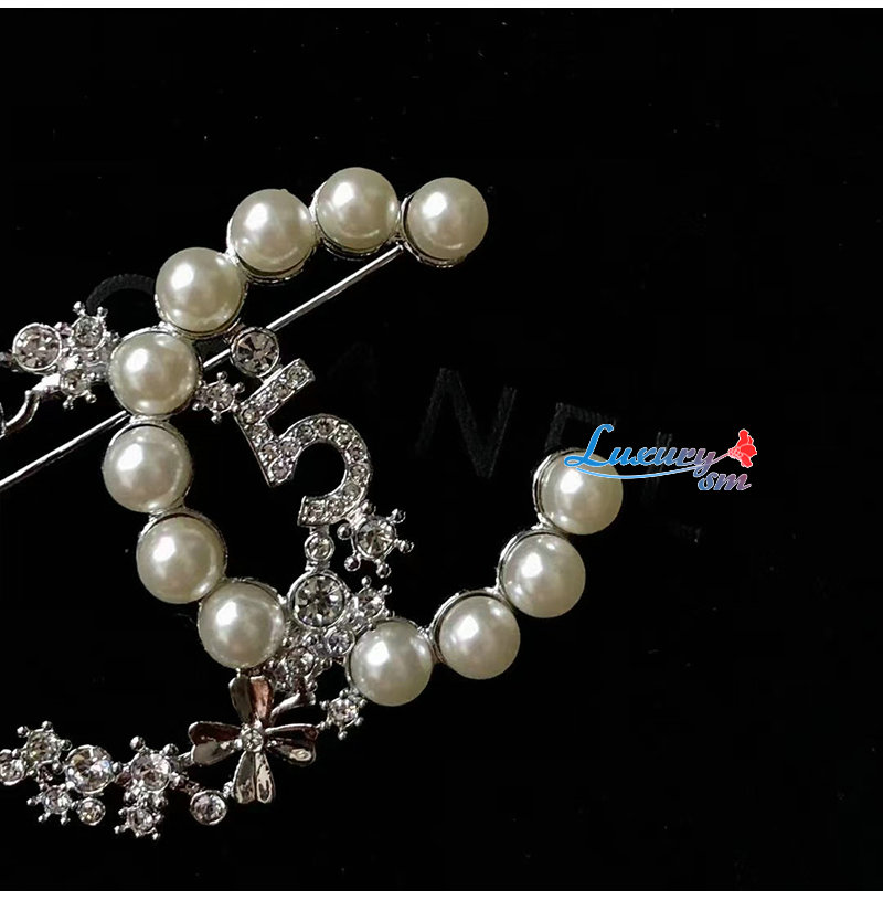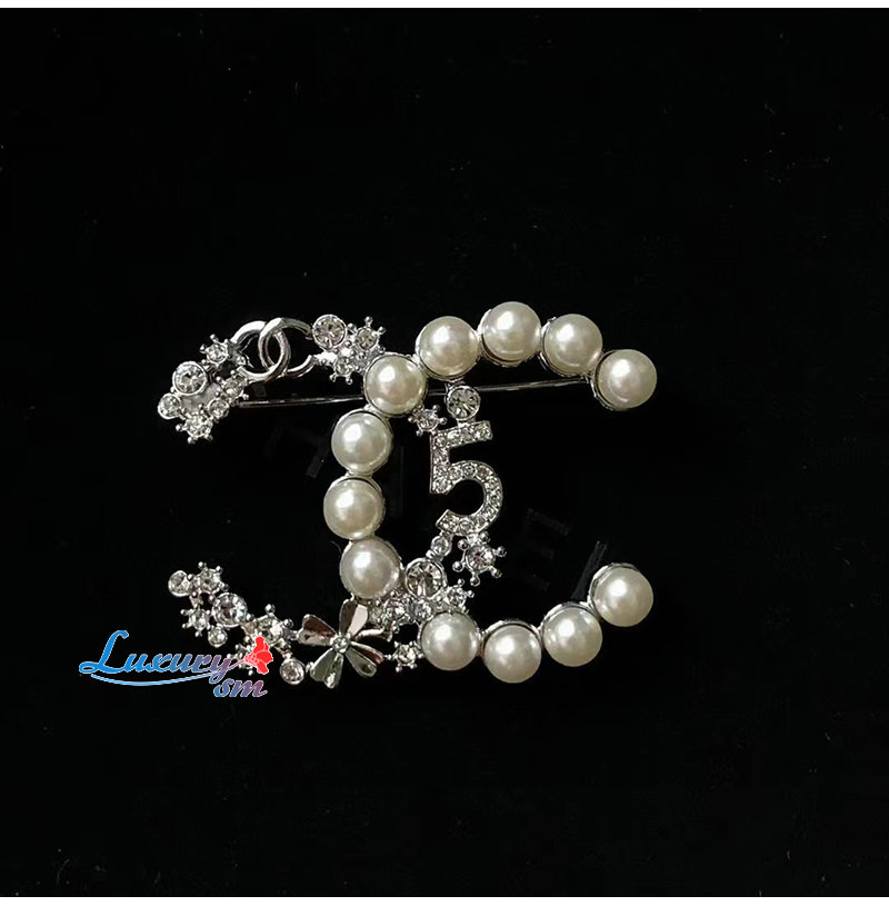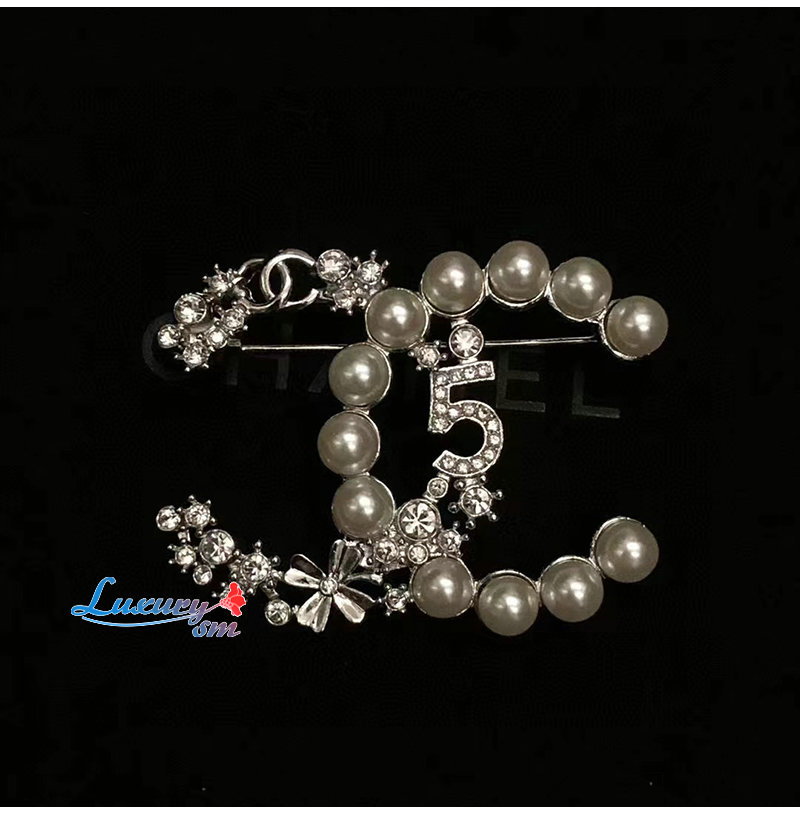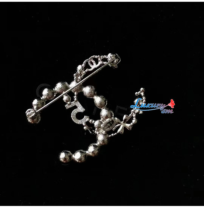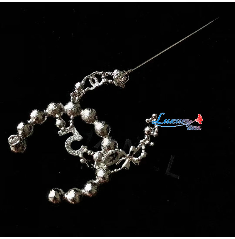 CHANEL-7191 샤넬 실버 펄 장식 CC 로고 브로치
