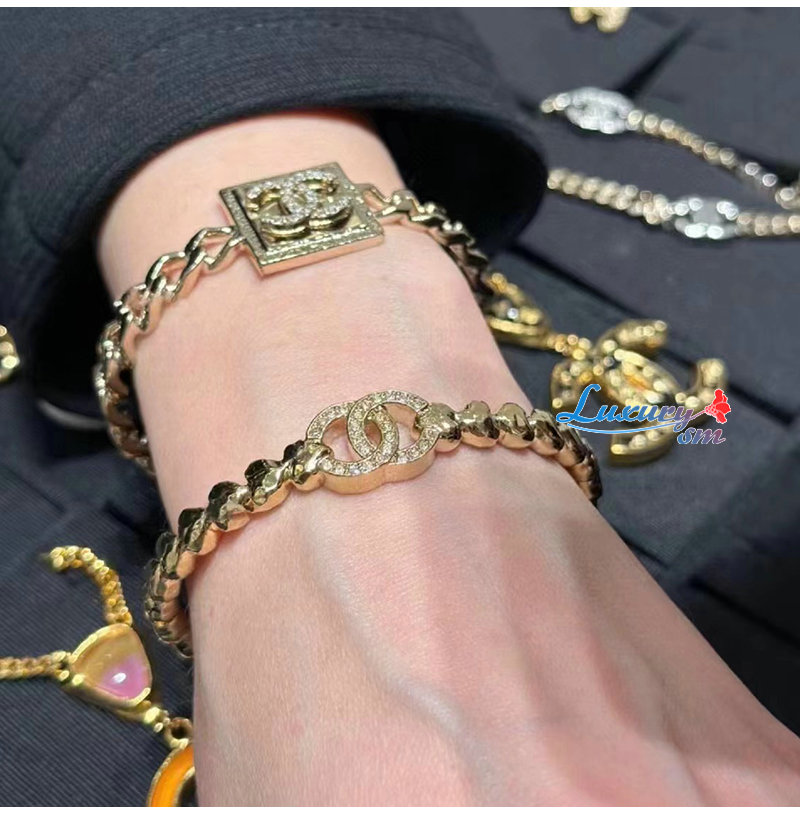 CHANEL-ABA237 샤넬 골드 크리스탈 장식 CC 로고 팔찌