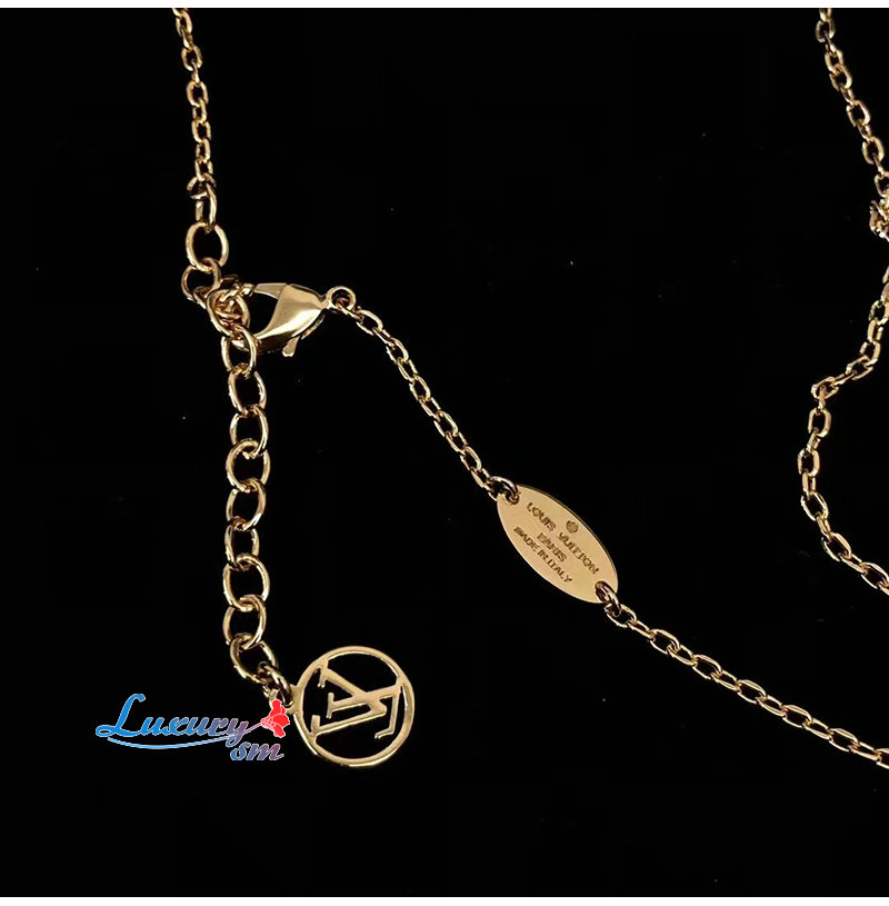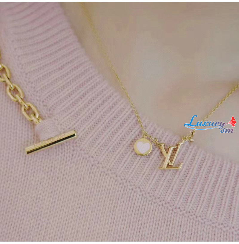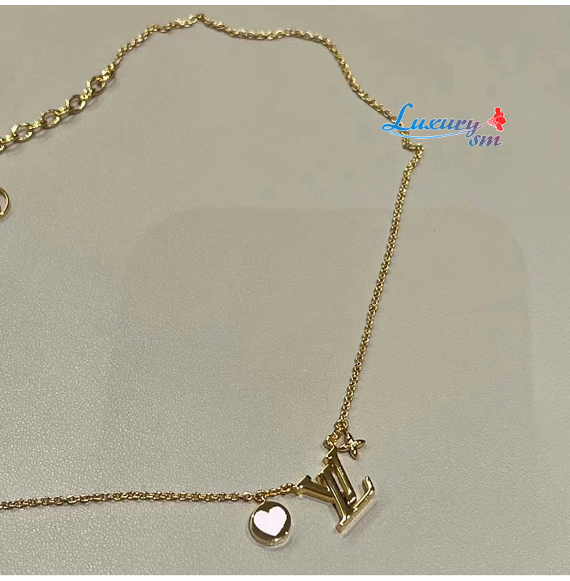 매우 섬세한 골드 색상 체인. LV 이니셜 펜던트