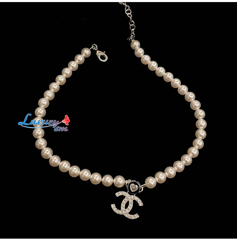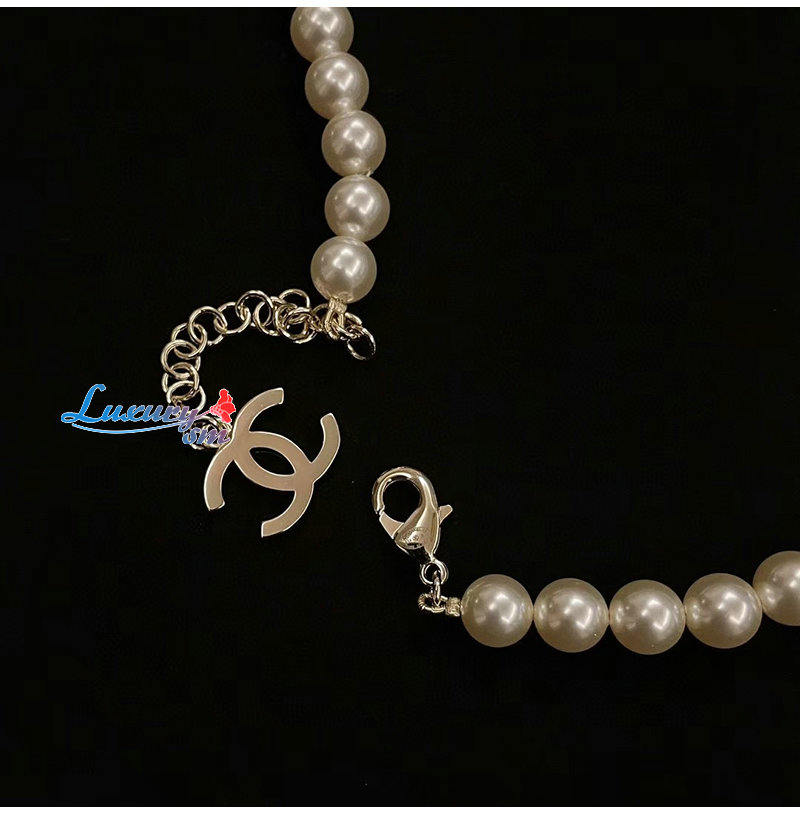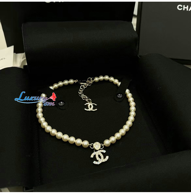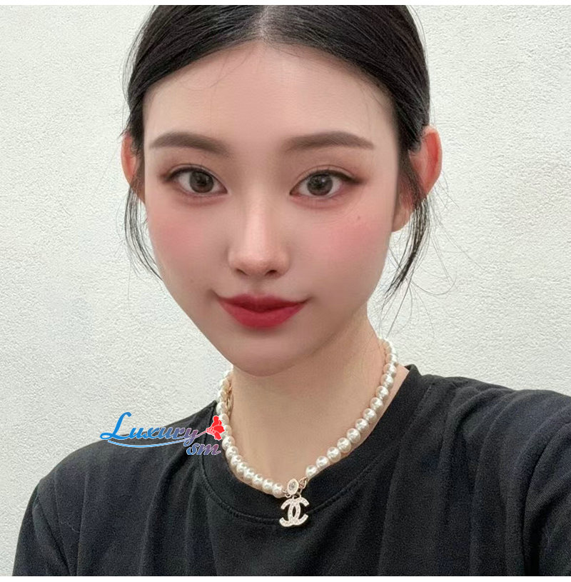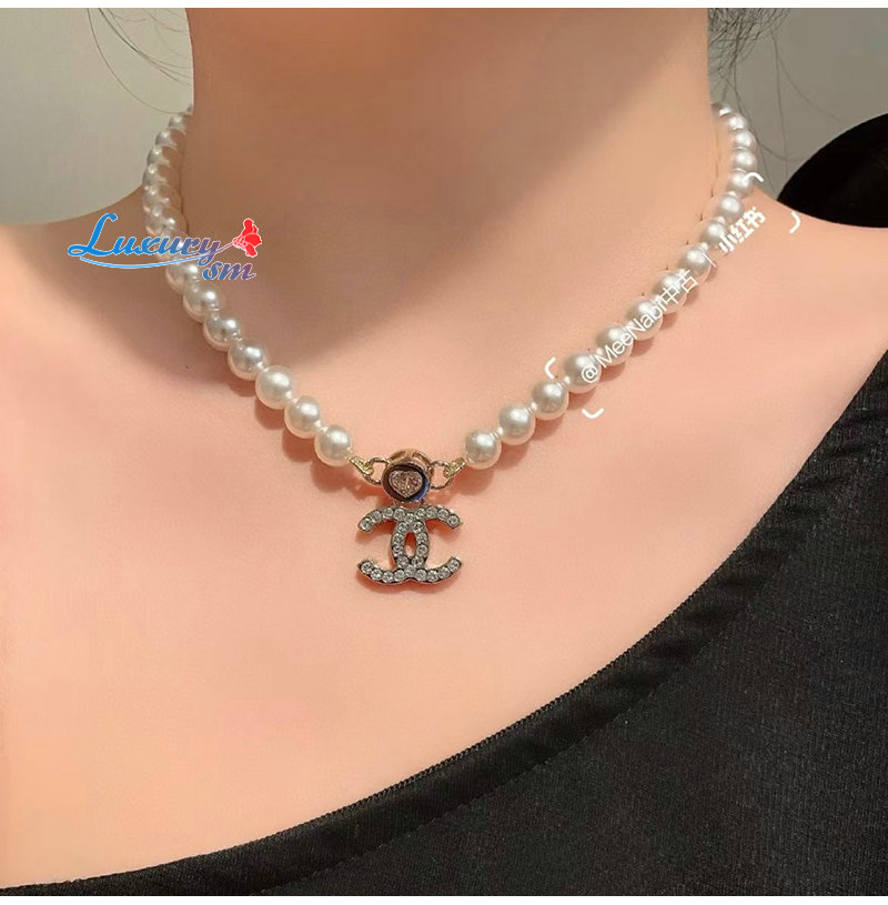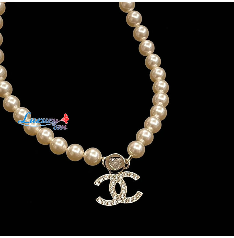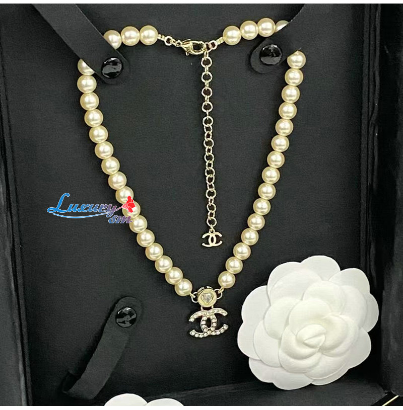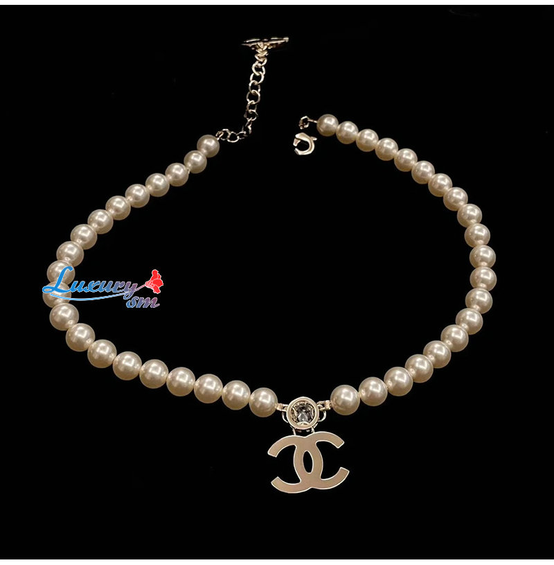 CHANEL-ABE280 샤넬 골드 진주 크리스탈 장식 CC 로고 목걸이