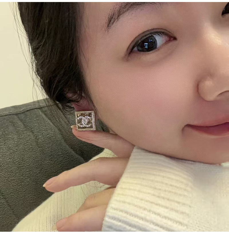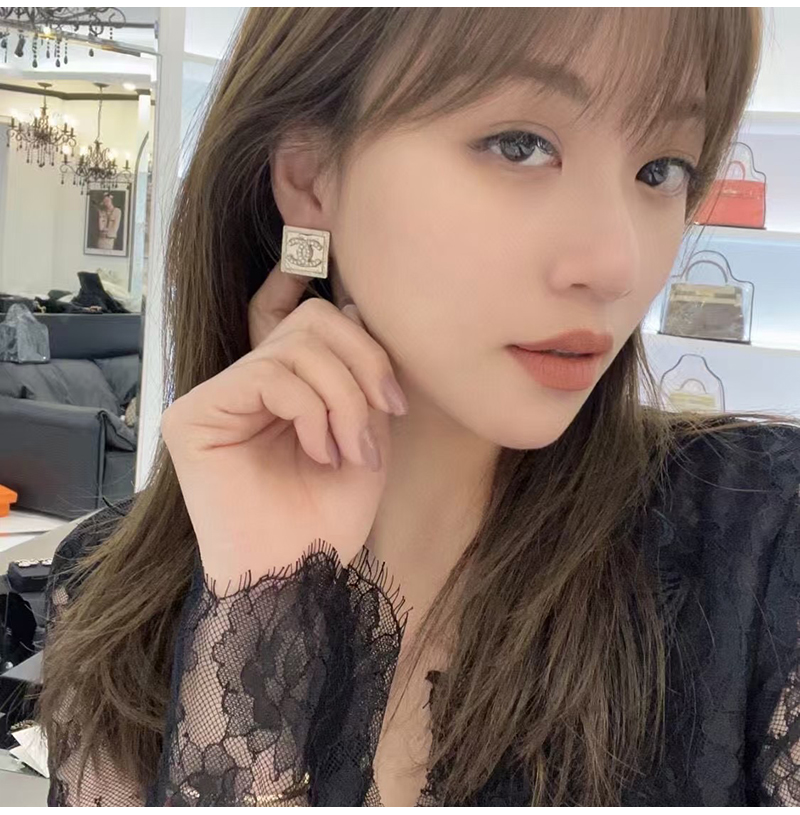 CHANEL-7211 샤넬 골드 CC 로고 스퀘어 귀걸이