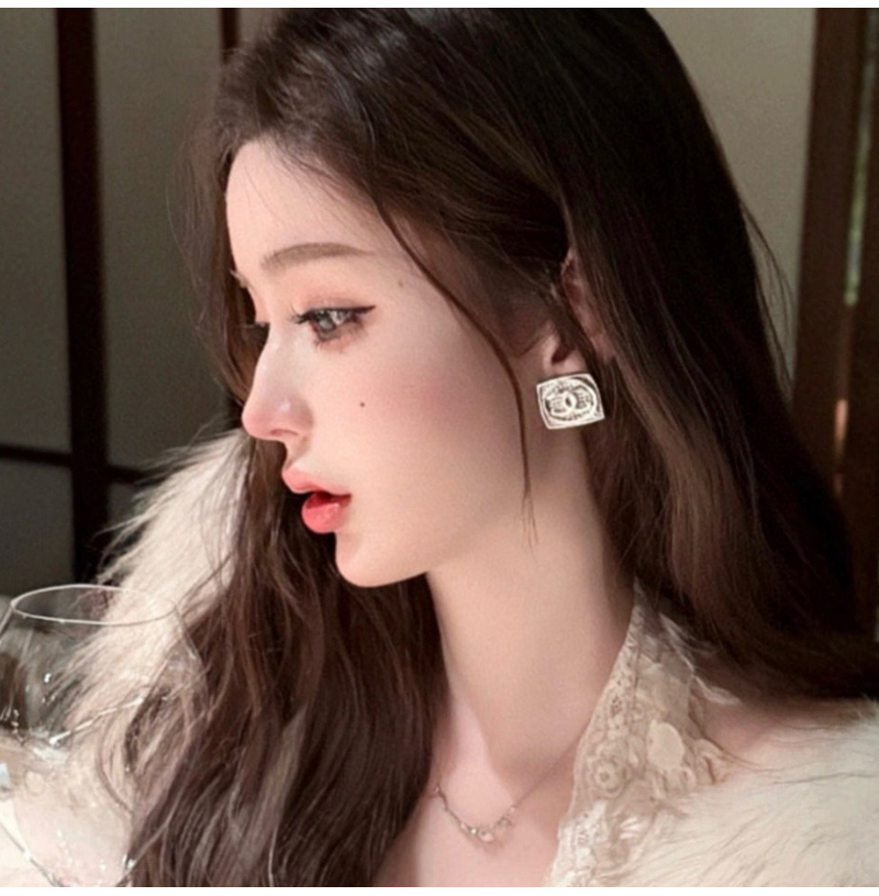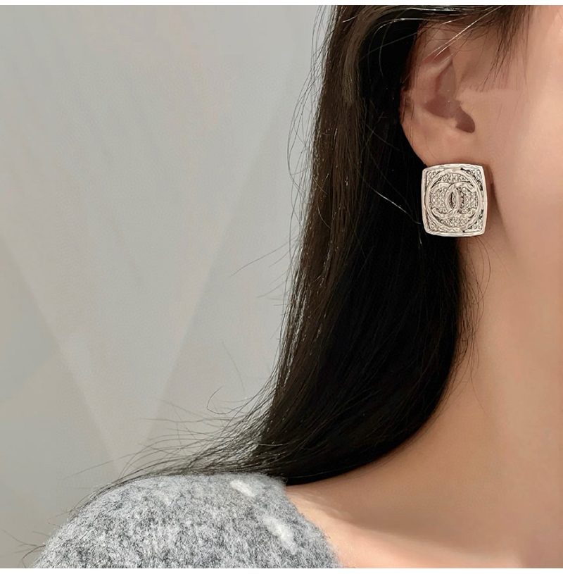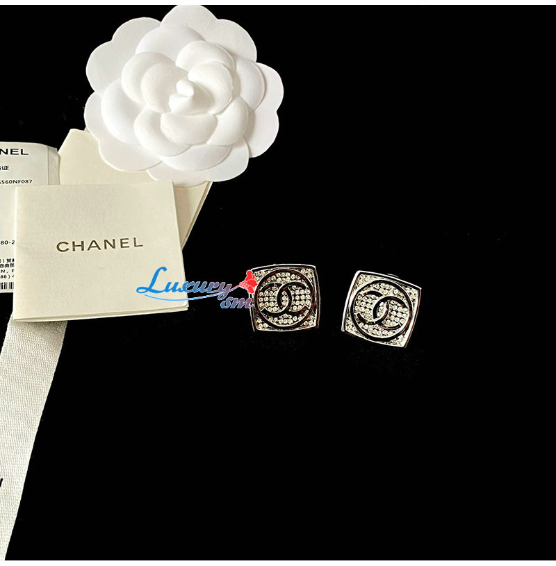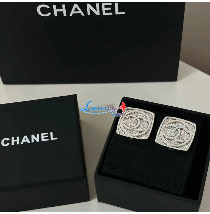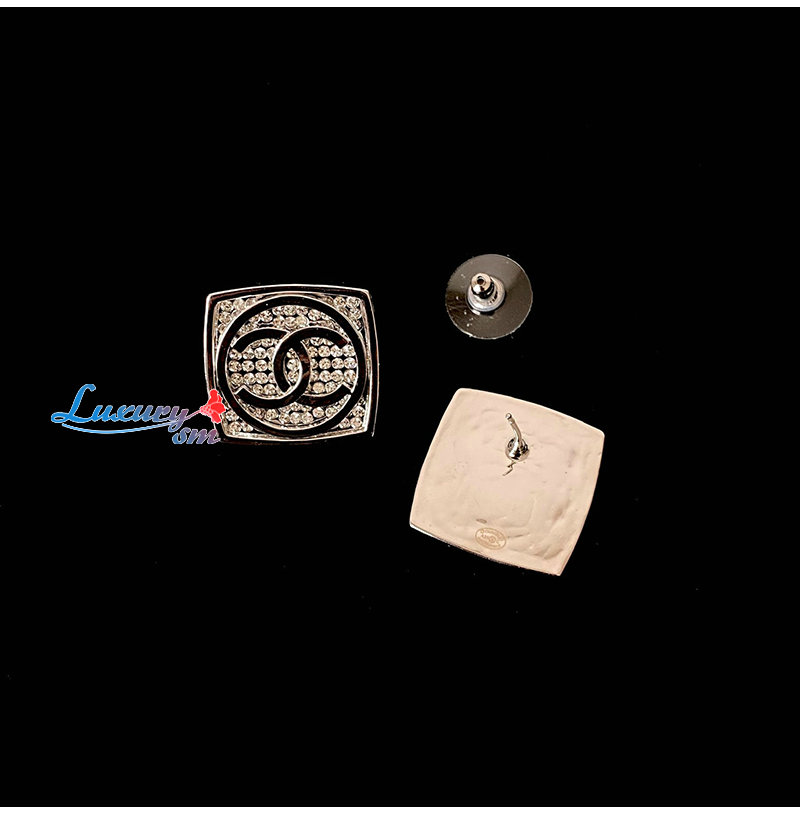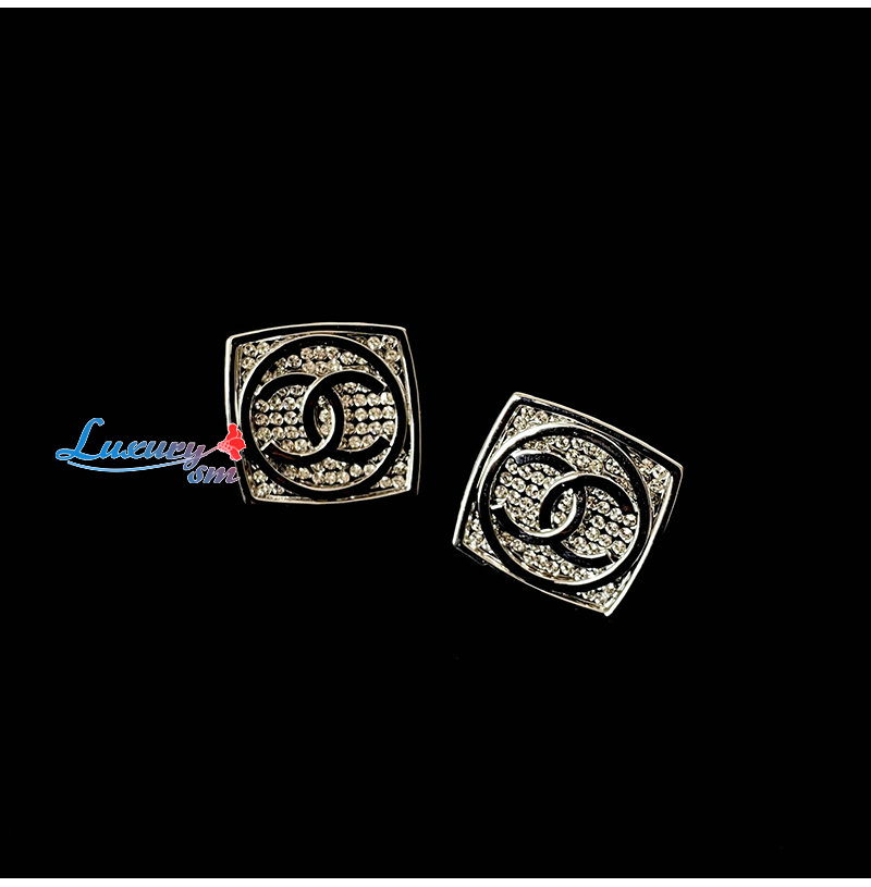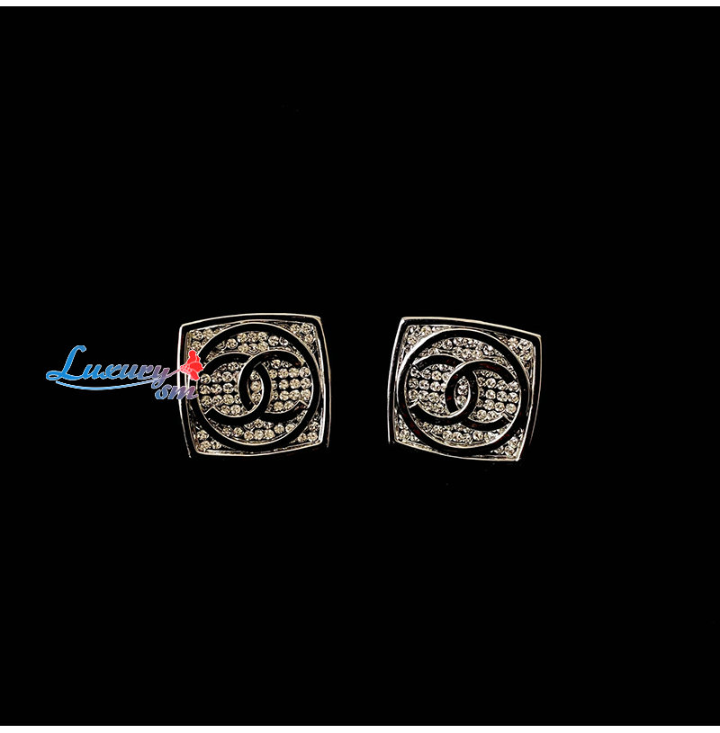 CHANEL-7638 샤넬 실버 크리스탈 장식 CC 로고 귀걸이