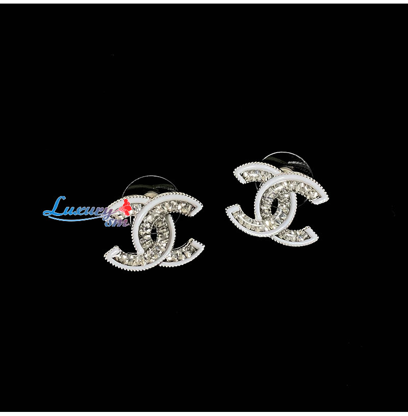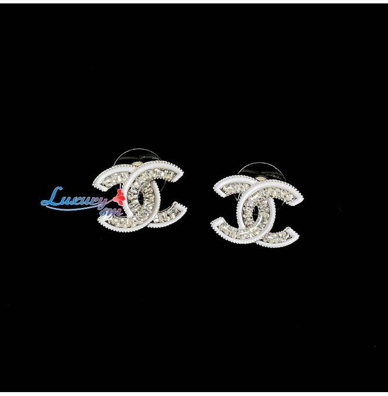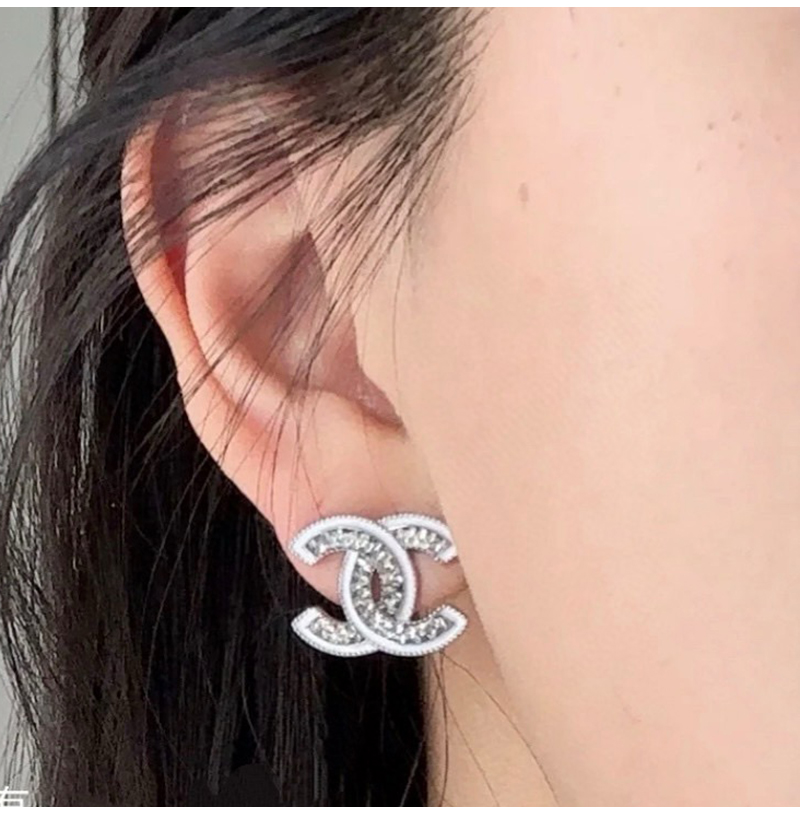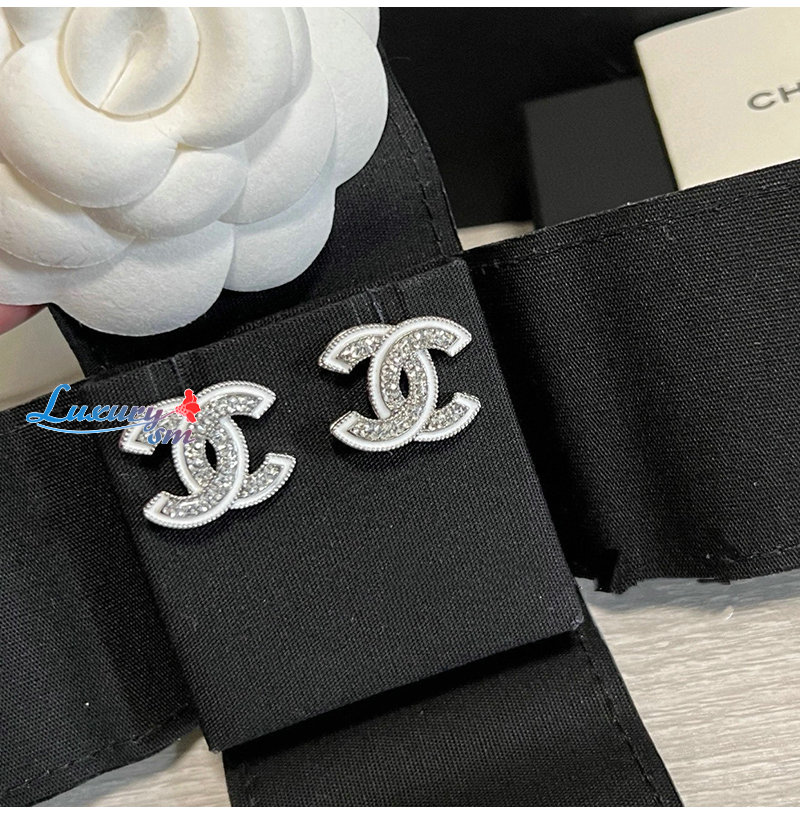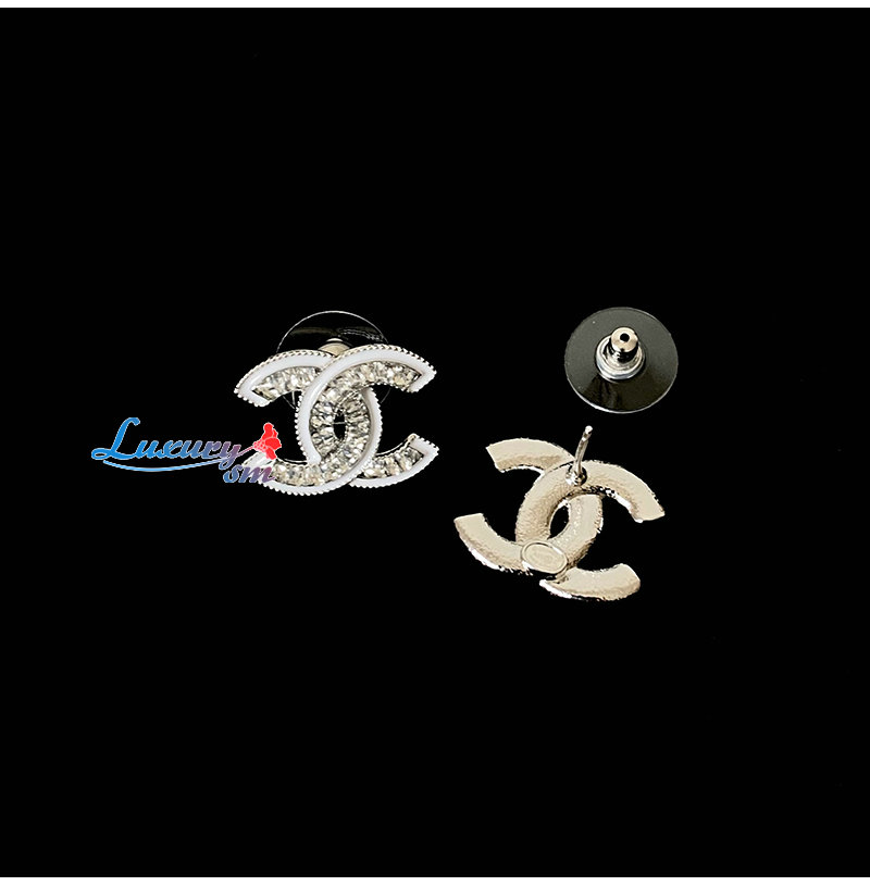 CHANEL-7661 샤넬 실버 크리스탈 장식 CC 로고 귀걸이