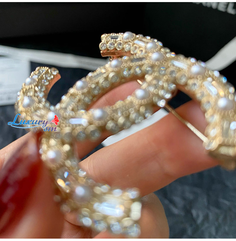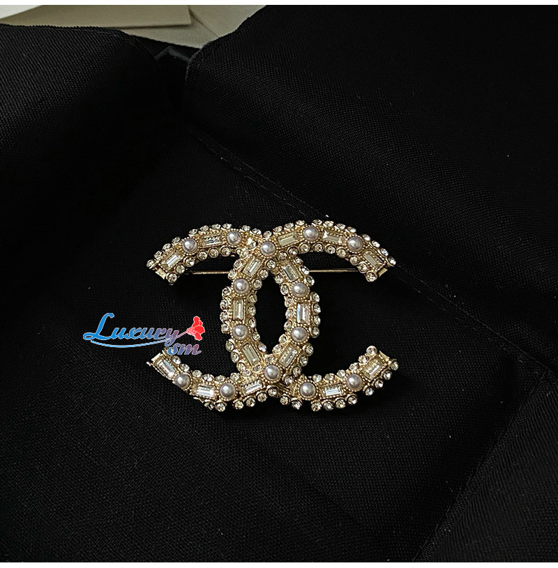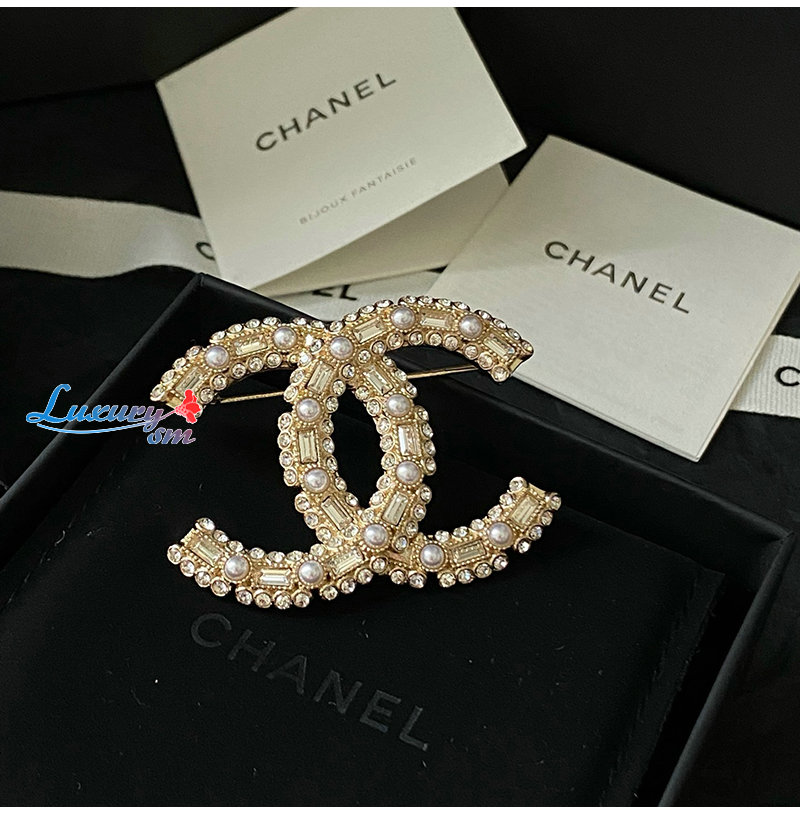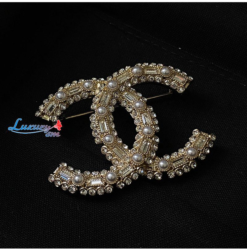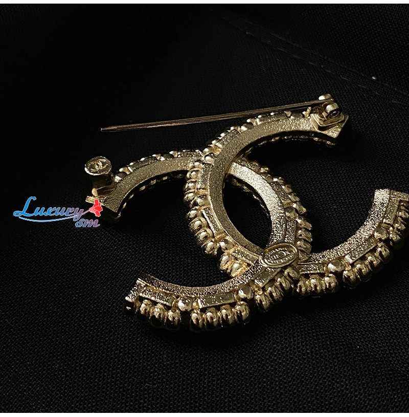 CHANEL-7097 샤넬 골드 크리스탈 진주 장식 CC 로고 브로치