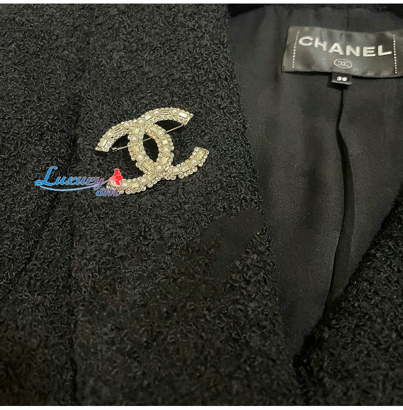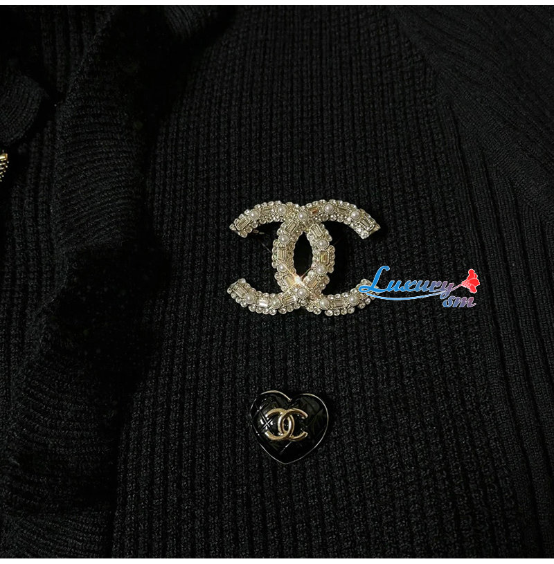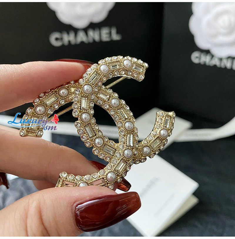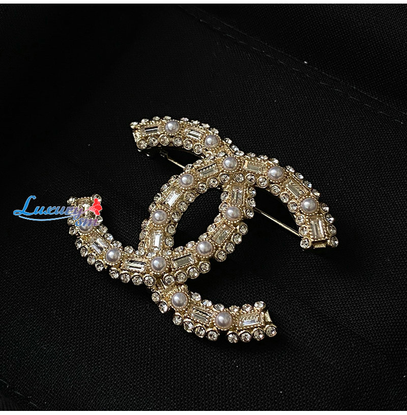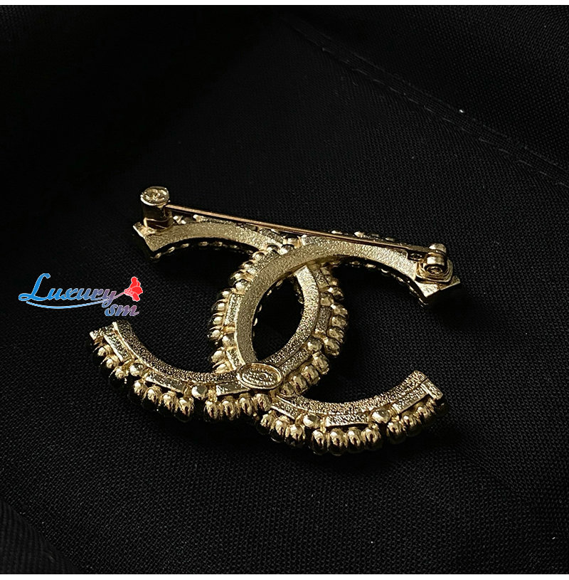CHANEL-7097 샤넬 골드 크리스탈 진주 장식 CC 로고 브로치