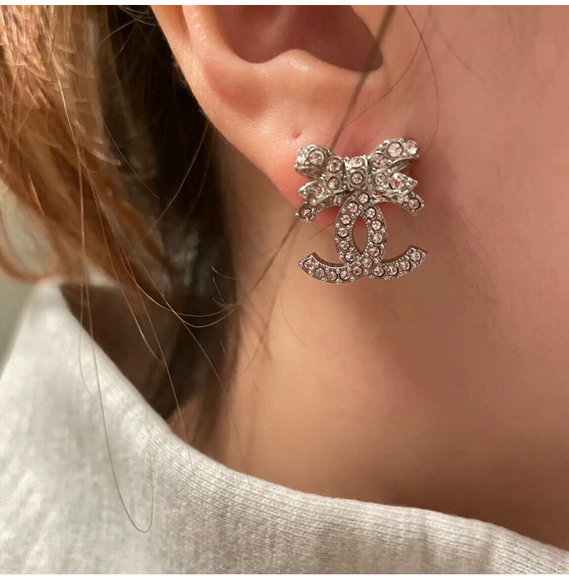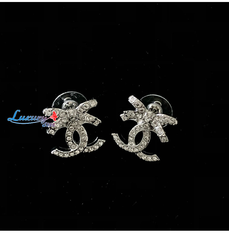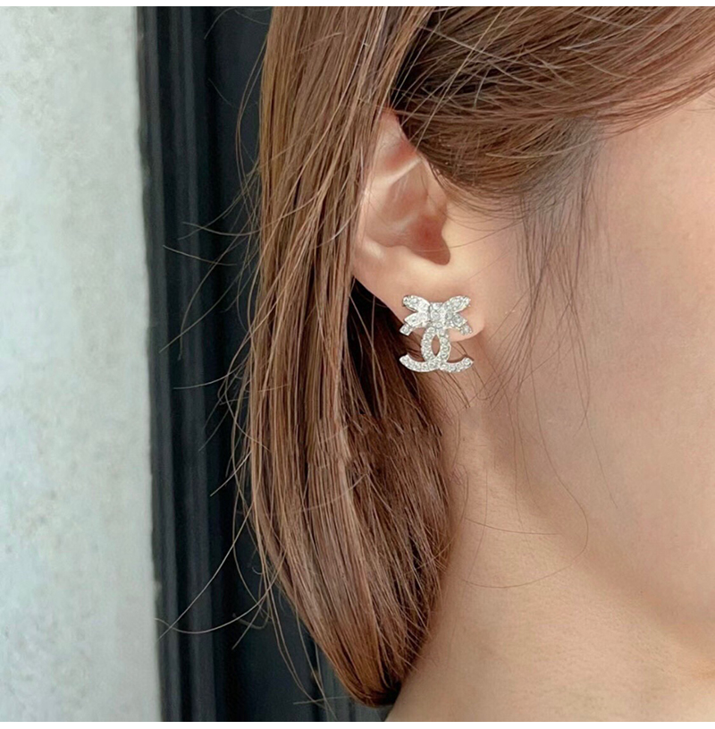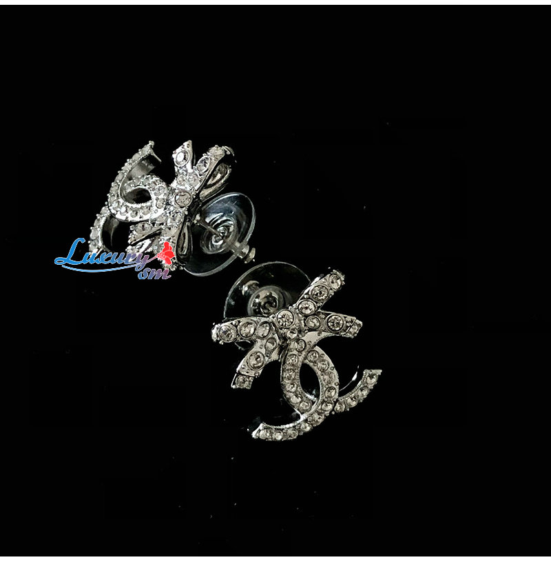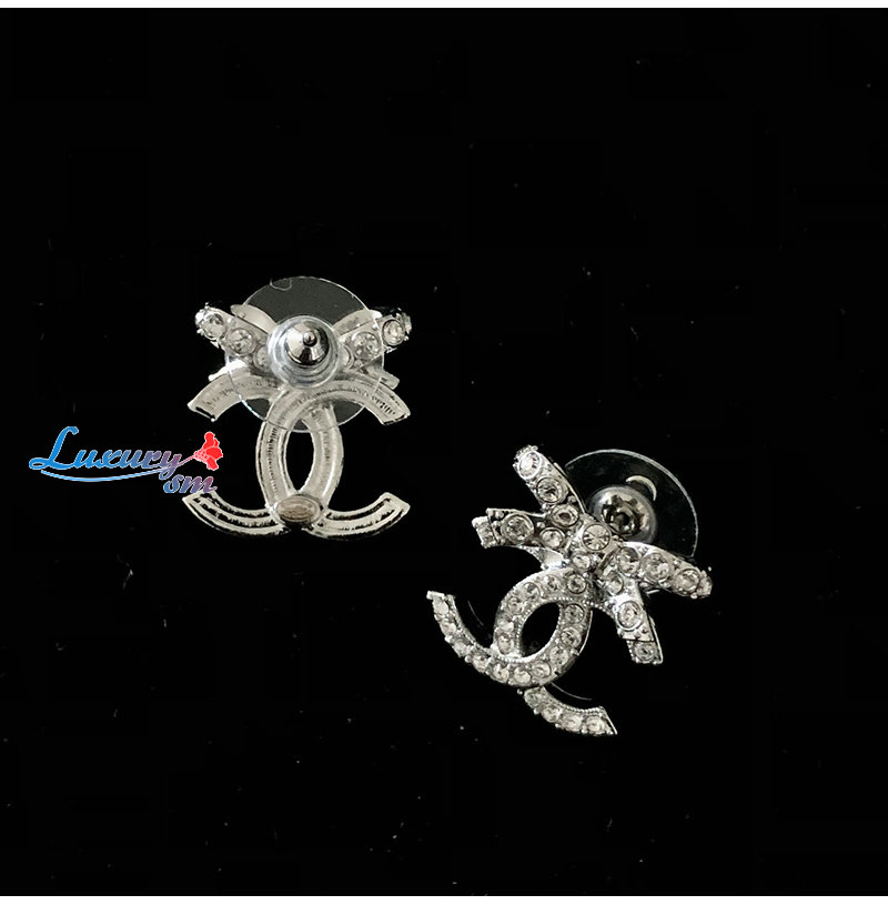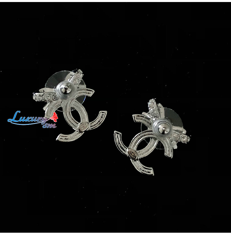 CHANEL-07213 샤넬 실버 크리스탈 장식 CC 로고 귀걸이