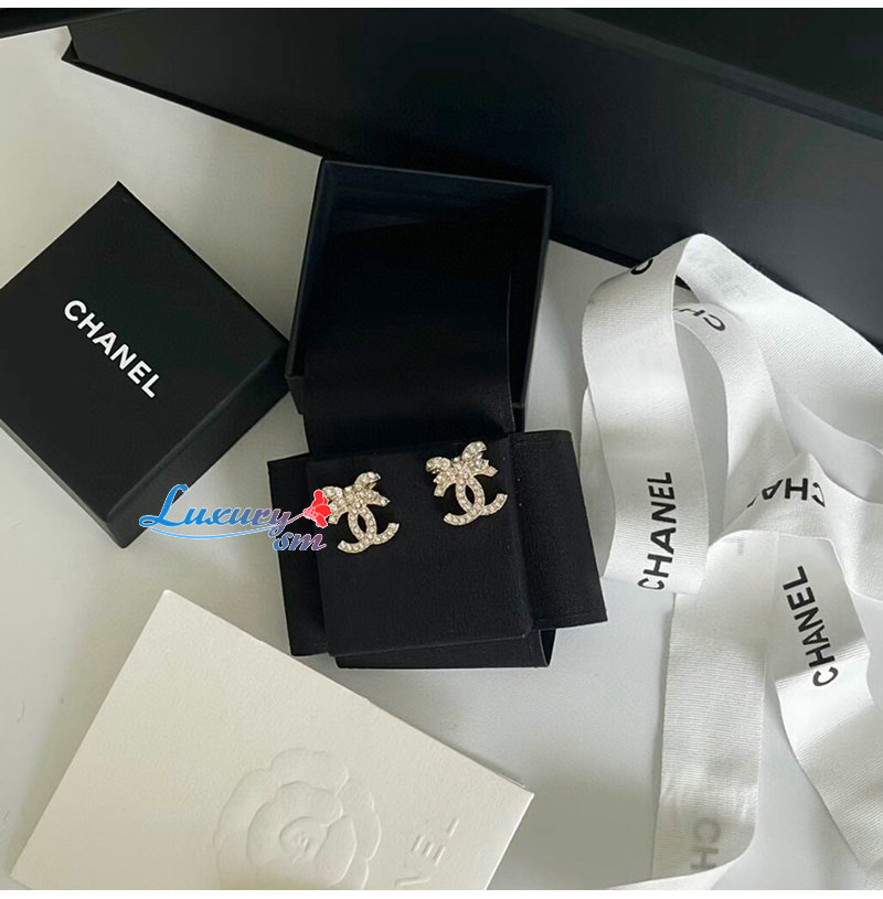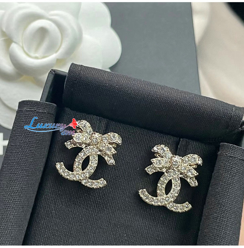 CHANEL-07214 샤넬 골드 크리스탈 장식 CC 로고 귀걸이