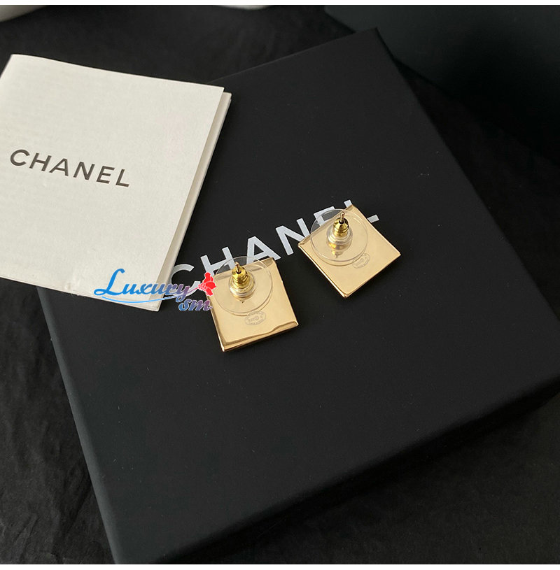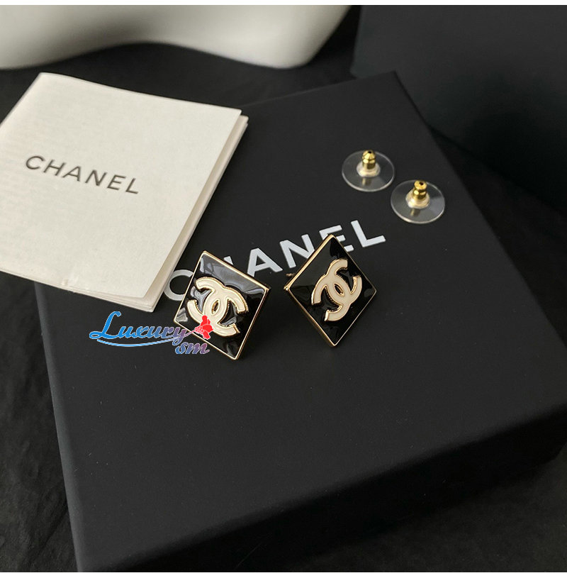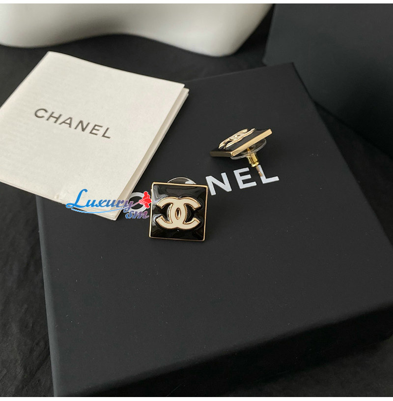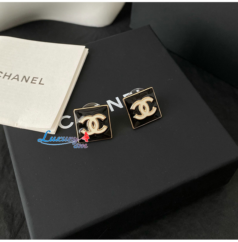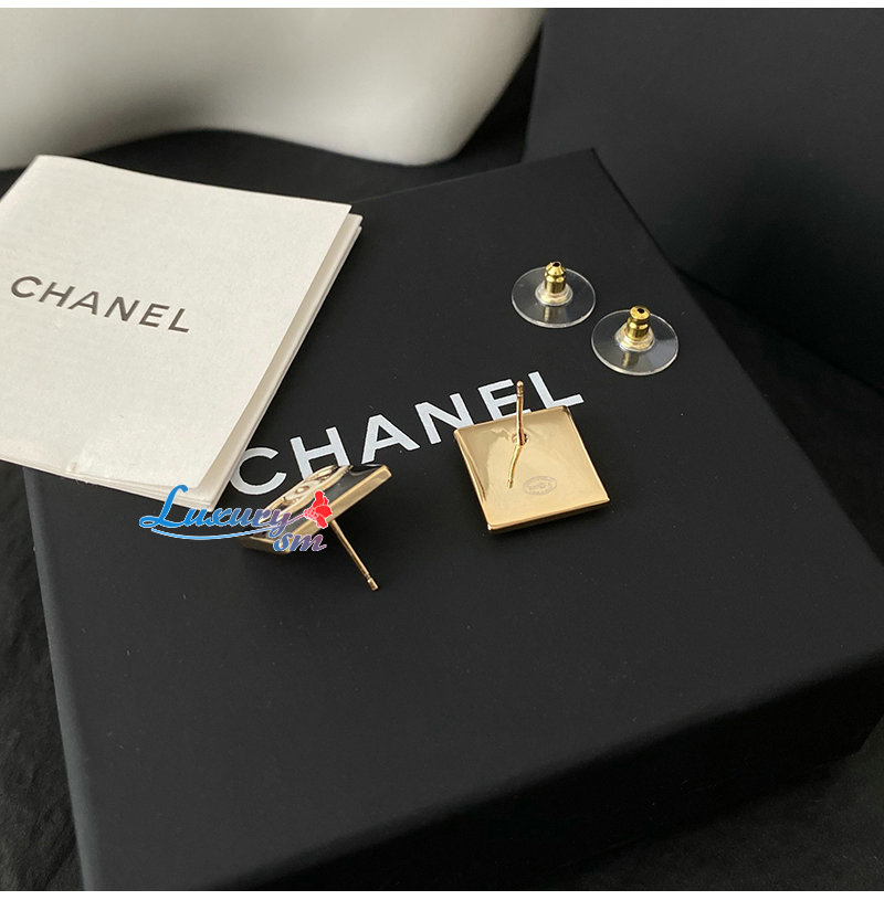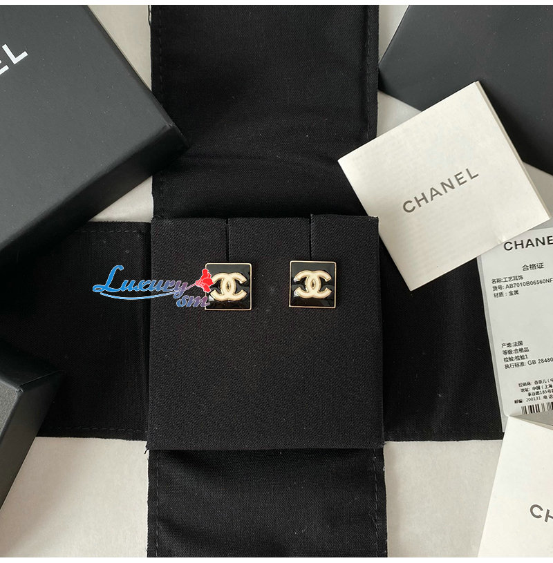 CHANEL-07215 샤넬 골드/블랙 에나멜 CC 로고 스퀘어 귀걸이