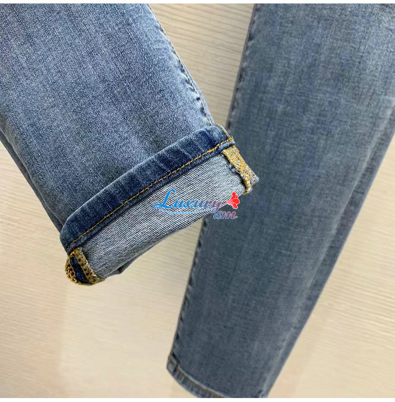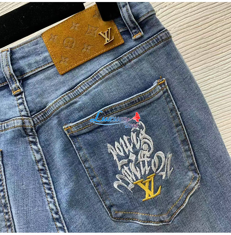 LOUIS VUITTON-02081 루이비통 블루 아플리케 장식 청바지 여성용