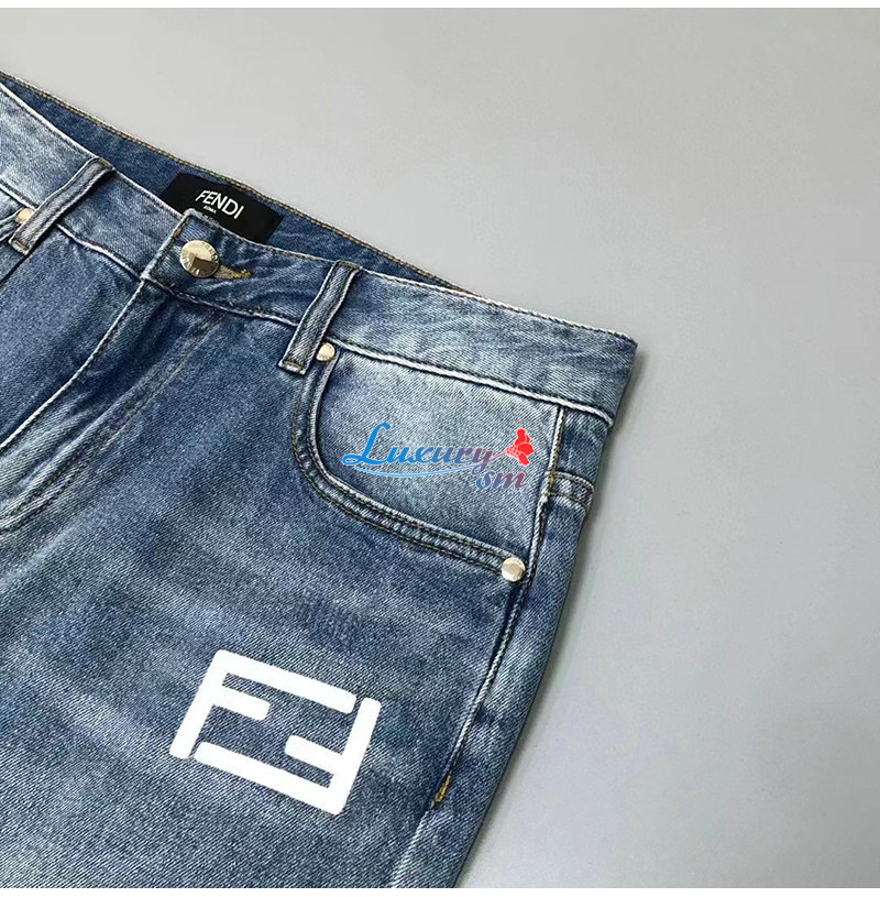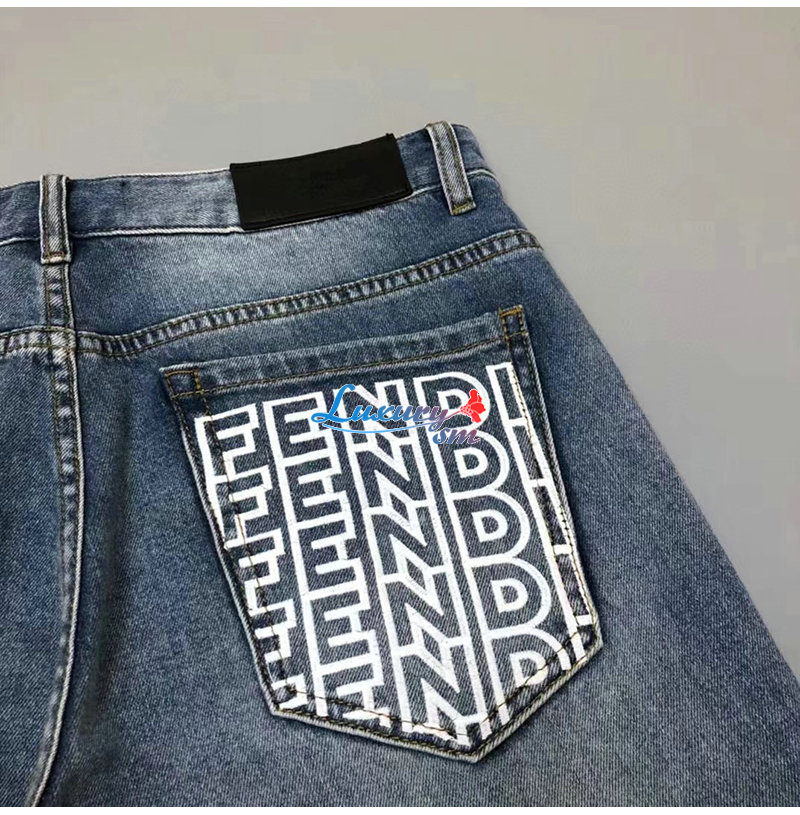 FENDI-03069 펜디 블루 프린트 장식 청바지 남성용