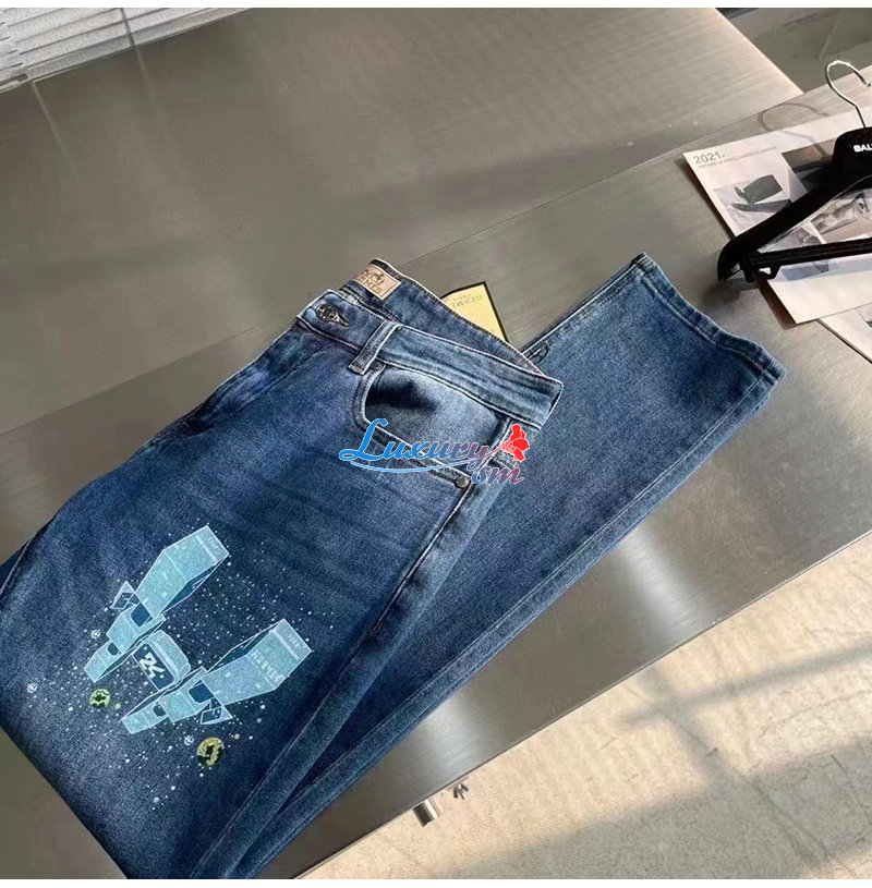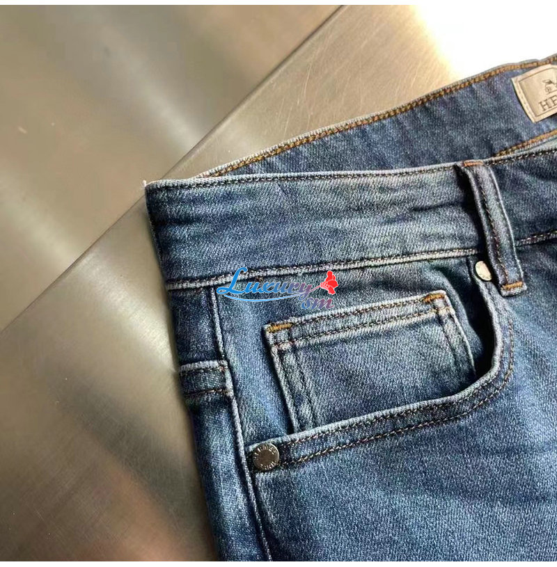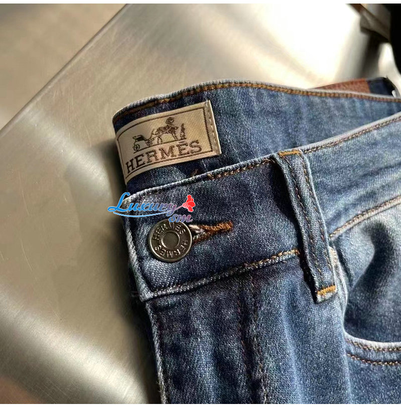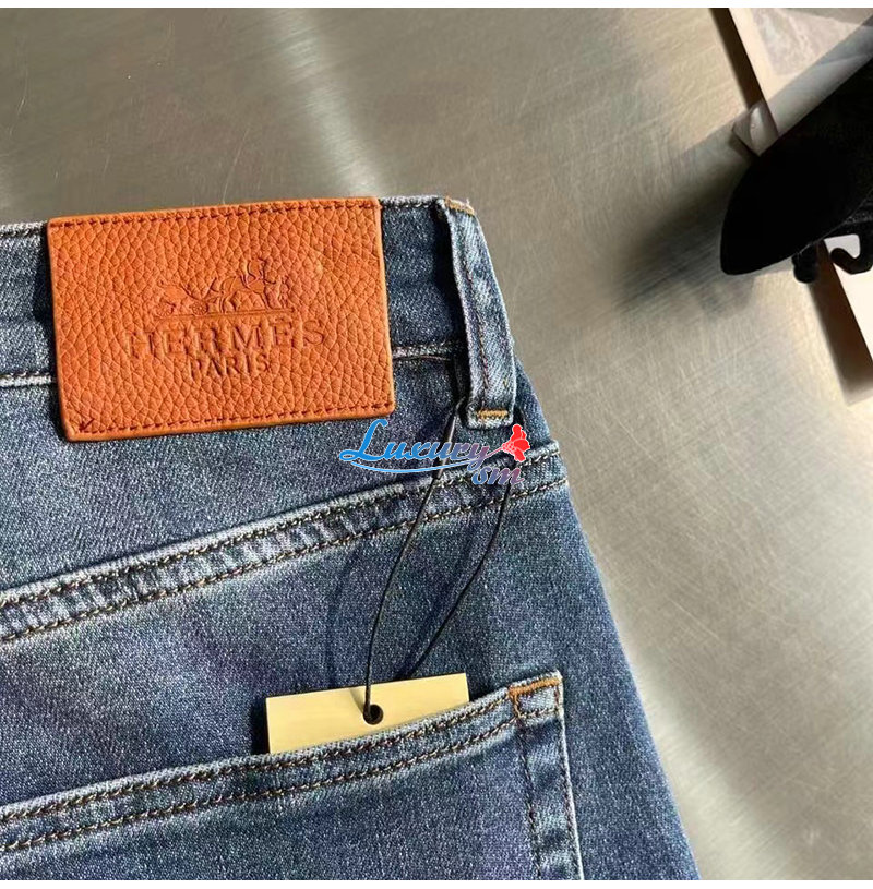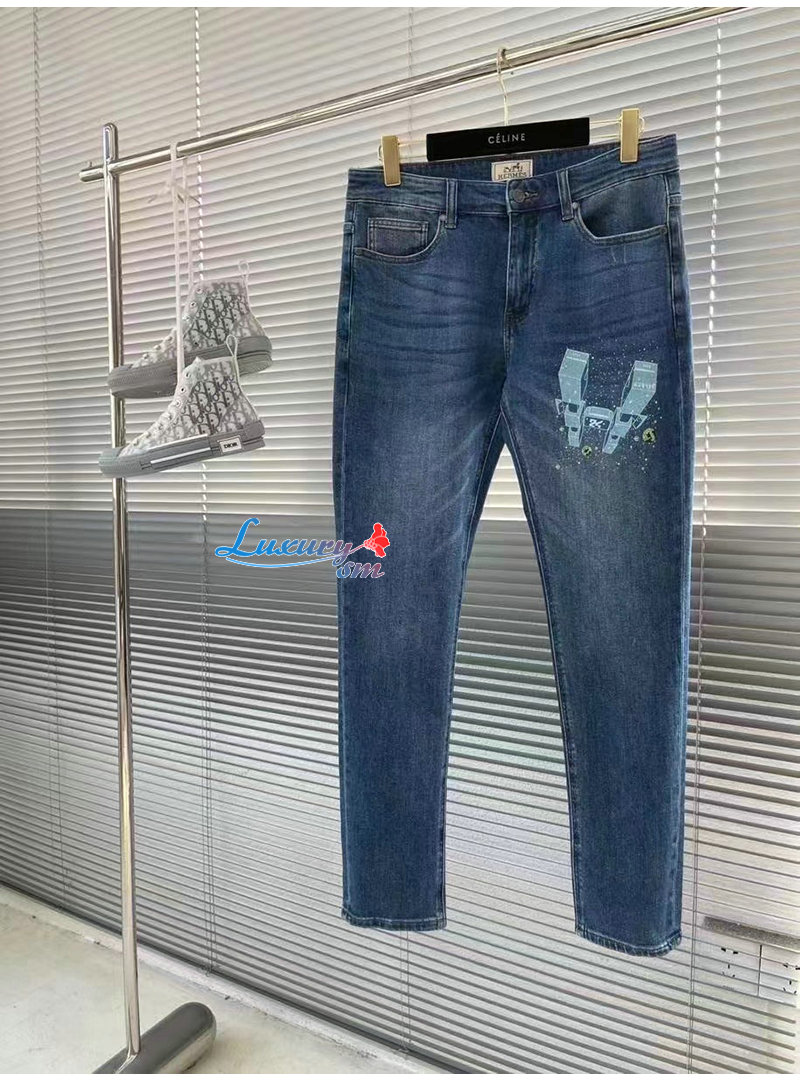 HERMES-03088 에르메스 블루 프린트 장식 청바지 남성용