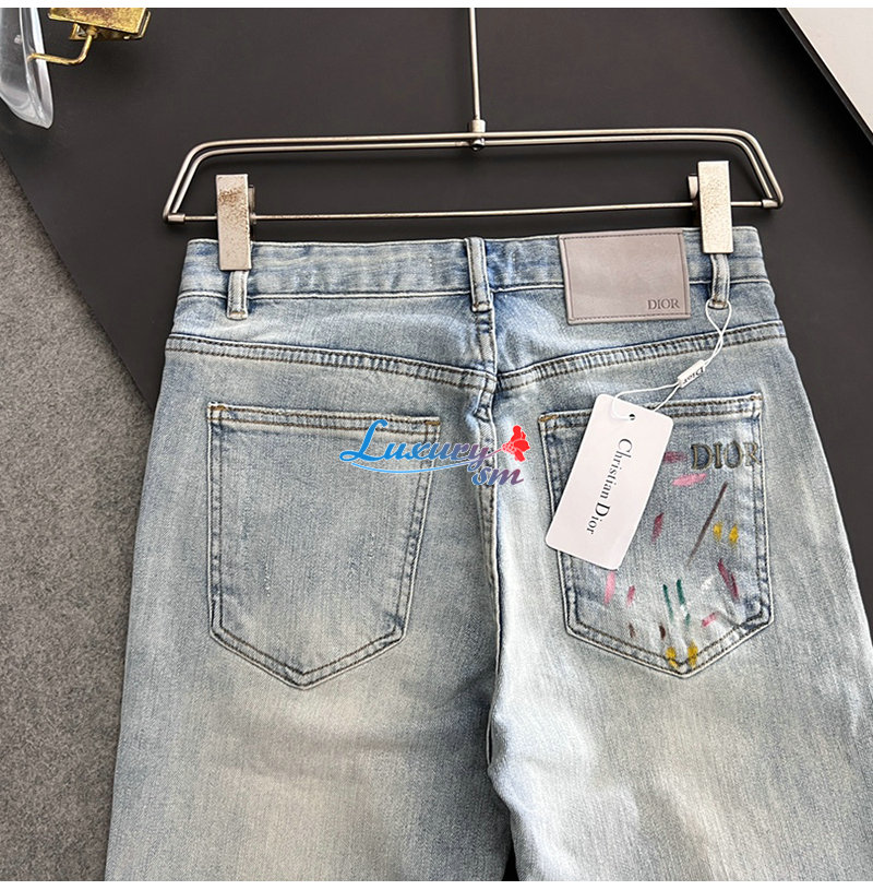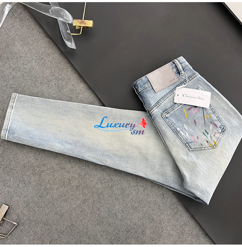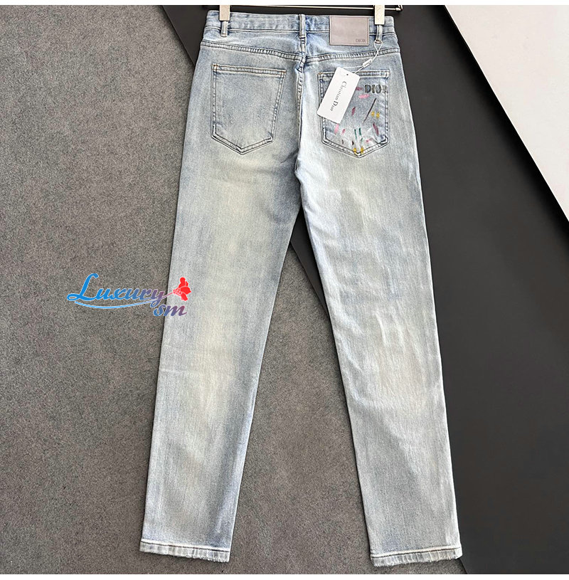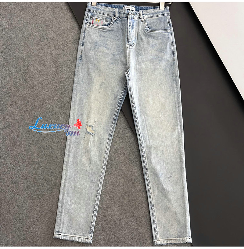 DIOR-11066 디올 라이트 블루 프린트 장식 청바지 남성용