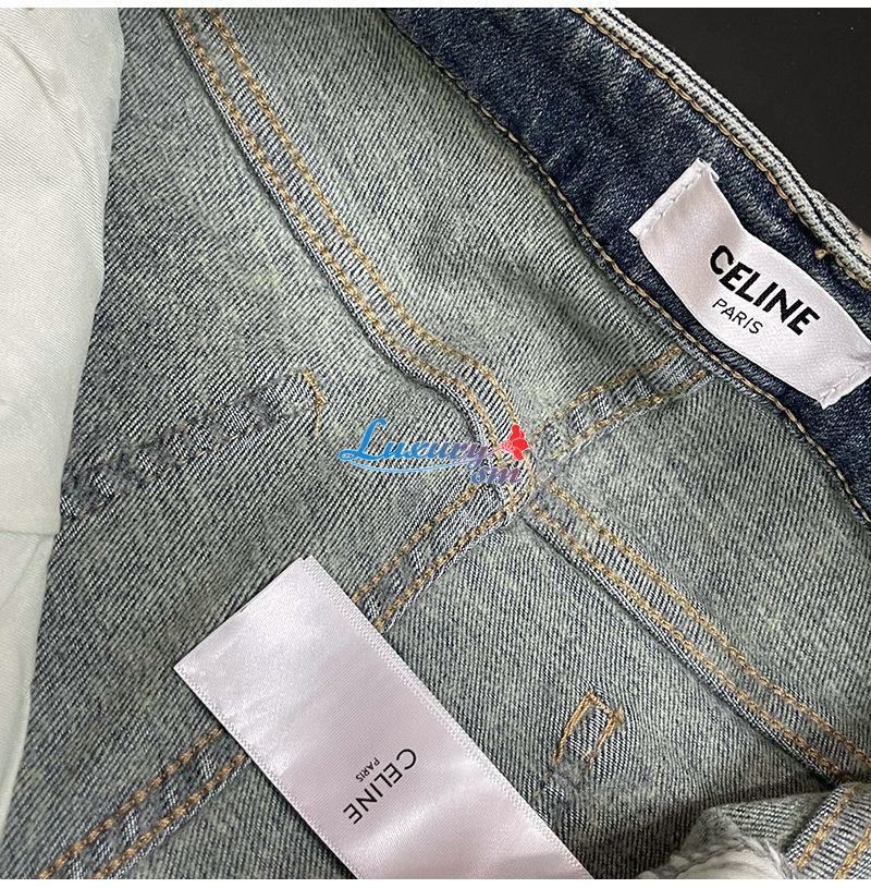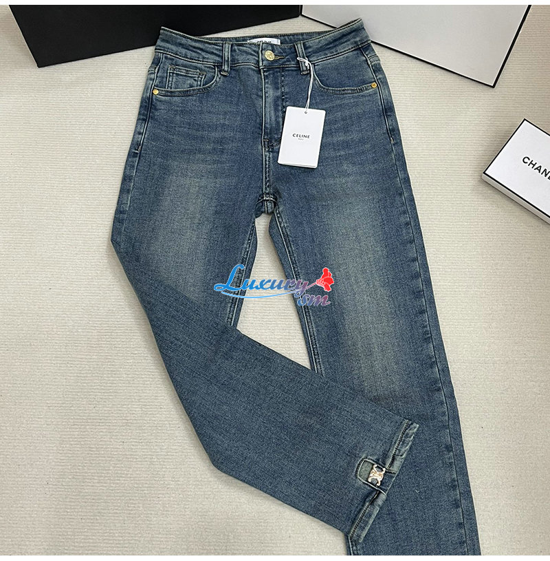 CELINE-12162 셀린느 블루 메탈 로고 장식 청바지 여성용